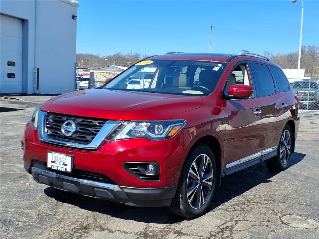 Scarlet Ember Tintcoat 2019 Nissan Pathfinder Platinum 4WD CVT with Xtronic V6 4WD. Another quality pre-owned vehicle from the Lou Fusz team. Recent arrival! 19/26 City/Highway MPG. Thank you for taking the time to look at this attractive-looking 2019 Nissan Pathfinder.