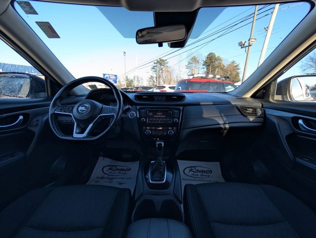 Carriage Traders proudly presents this 2019 Nissan Rogue with 17 Aluminum Alloy Wheels, 4-Wheel Disc Brakes, 6 Speakers, 6.386 Axle Ratio, ABS brakes, Air Conditioning, Alloy wheels, AM/FM radio: SiriusXM, Anti-whiplash front head restraints, Auto High-beam Headlights, Automatic temperature control, Blind Spot Warning, Brake assist, Bumpers: body-color, CD player, Cloth Seat Trim, Delay-off headlights, Driver door bin, Driver vanity mirror, Dual front impact airbags, Dual front side impact airbags, Electronic Stability Control, First Aid Kit, Floor Mats & 2-PC Cargo Area Protector, Four wheel independent suspension, Front anti-roll bar, Front Bucket Seats, Front Center Armrest w/Storage, Front dual zone A/C, Front reading lights, Fully automatic headlights, Heated door mirrors, Heated Front Bucket Seats, Heated front seats, Illuminated entry, Leather Shift Knob, Low tire pressure warning, NissanConnect featuring Apple CarPlay and Android Auto, Occupant sensing airbag, Outside temperature display, Overhead airbag, Overhead console, Panic alarm, Passenger door bin, Passenger vanity mirror, Power door mirrors, Power driver seat, Power Liftgate, Power steering, Power windows, Radio data system, Radio: AM/FM/CD/AUX NissanConnect w/Navigation, Rear anti-roll bar, Rear Parking Sensors, Rear seat center armrest, Rear window defroster, Rear window wiper, Remote keyless entry, Roof rack: rails only, Security system, Speed control, Speed-sensing steering, Split folding rear seat, Spoiler, Steering wheel mounted audio controls, Tachometer, Telescoping steering wheel, Tilt steering wheel, Traction control, Trip computer, Turn signal indicator mirrors.