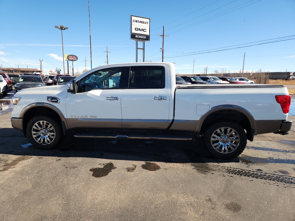 Pearl White 2019 Nissan Titan XD Platinum Reserve 4WD 6-Speed Automatic 5.0L V8. Bender Chrysler Dodge RAM Jeep is dedicated to your satisfaction before, during, and after your purchase. We'll go the extra mile to take care of you.