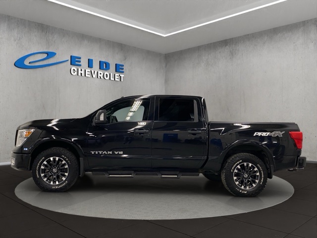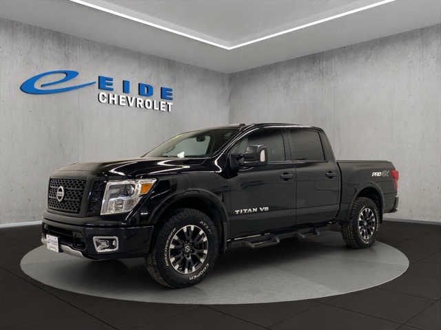 2019 Nissan Titan PRO-4X Black Black Leather Seats Heated/Cooled Front Seats Heated Rear Seats Apple Carplay/Android Auto Remote Start Bluetooth Handsfree Phone Blind Spot Alert Satellite Radio Heated Steering Wheel 5.6L V8 4WD. We have been in business since 1981 and are locally owned and operated. At Eide Chevrolet, we believe in giving you a fair and competitive price upfront. All of our vehicles feature our price. We would love to have your trade! We are very serious about your satisfaction and our aim is to make your experience with us Simple, Fast & Fun. Eide Chevrolet pre-owned vehicles come standard with one key. If we received more than one key from the previous owner, we include them. Additional keys, as well as dealer-installed accessories, may be purchased at the time of sale.