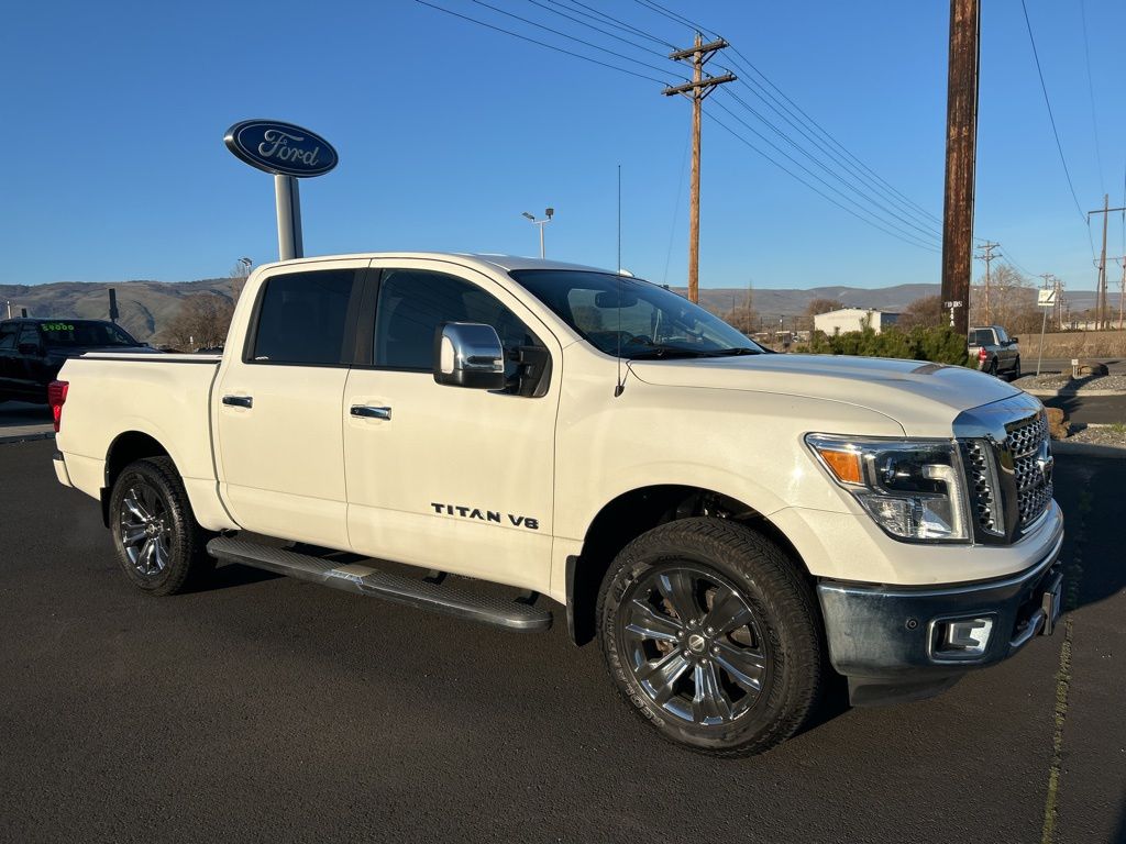 Underriner price $29220 ! 2019 Nissan Titan SL Carfax One-Owner. 4WD. Pearl White Metallic. At all Underriner Automotive Dealerships we offer a 3-Day Money-Back Guarantee on every car we sell. And for select vehicles that are newer than 5-years old and less than 80,000 miles, we include a complimentary Lifetime Powertrain Warranty! Ask us for details and schedule your drive today at https://www.underrinerfordofthedalles.com We offer a 100% Online buying process, test drive from home or work, remote financing, and home delivery complimentary. Learn more at https://www.UnderrinerFord.com or call 541-296-6191. Family-owned since 1944! When you choose Underriner you can be sure you're investing in our community.