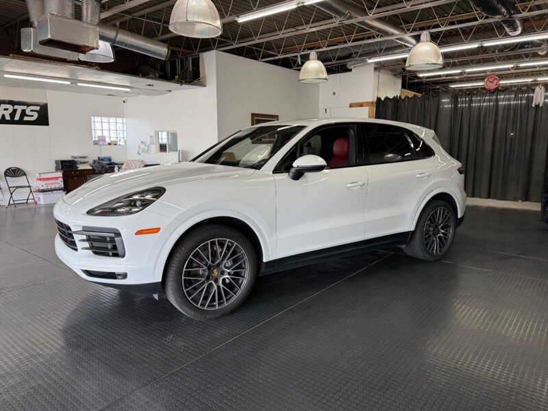 2019 Porsche Cayenne — Carrara White Metallic exterior with Black/Bordeaux Red leather interior. Powered by the 3.0L Turbo V6 producing 340 hp and 331 lbs of torque, paired with Porsche’s smooth-shifting automatic transmission and full-time all-wheel drive. This Cayenne combines Porsche driving with tasteful exterior upgrades and premium interior materials. For additional detail about the Premium Package Plus content or to schedule a viewing and test drive, please contact the dealership.