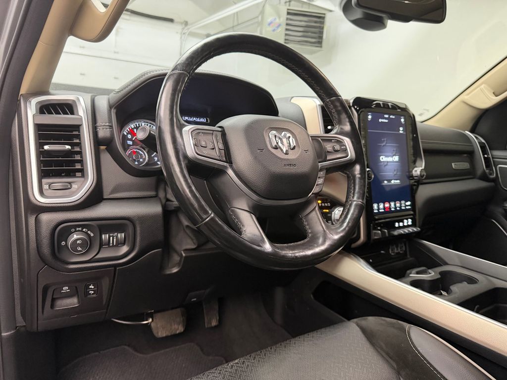 Enjoy your music even more with the premium sound system in this model. This Ram 1500 offers Android Auto for seamless smartphone integration. The vehicle is equipped with the latest generation of XM/Sirius Radio. Protect it from unwanted accidents with a cutting edge backup camera system. Bluetooth technology is built into this 1/2 ton pickup, keeping your hands on the steering wheel and your focus on the road. It keeps you comfortable with Auto Climate. The state of the art park assist system will guide you easily into any spot. Start the vehicle from inside with remote start. The leather seats in this Ram 1500 are a must for buyers looking for comfort, durability, and style. You'll never again be lost in a crowded city or a country region with the navigation system on this model. This model offers Apple CarPlay for seamless connectivity. This vehicle is pure luxury with a heated steering wheel.