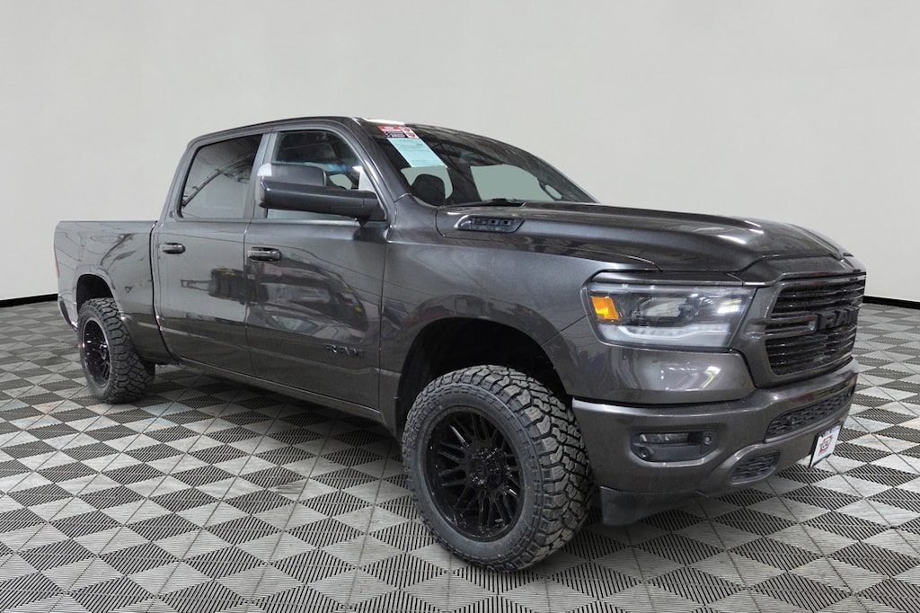 Granite Crystal Metallic exterior and Black interior, Sport trim. Heated Seats, Bluetooth, Satellite Back Camera, 4x4, Alloy Wheels, Tow Hitch. Remote Start Remote Start System. Engine: 5.7L HEMI V8 w/FuelSaver MDS. Ram Sport with Granite Gray and Black interior features a 8 speed automatic transmission and a full-size temporary use spare tire. It feels strong off the line and serves up excellent roll-on acceleration when its time to merge or make a pass. Reduced from $35,995. Approx. Original Base Sticker Price: $59,900.