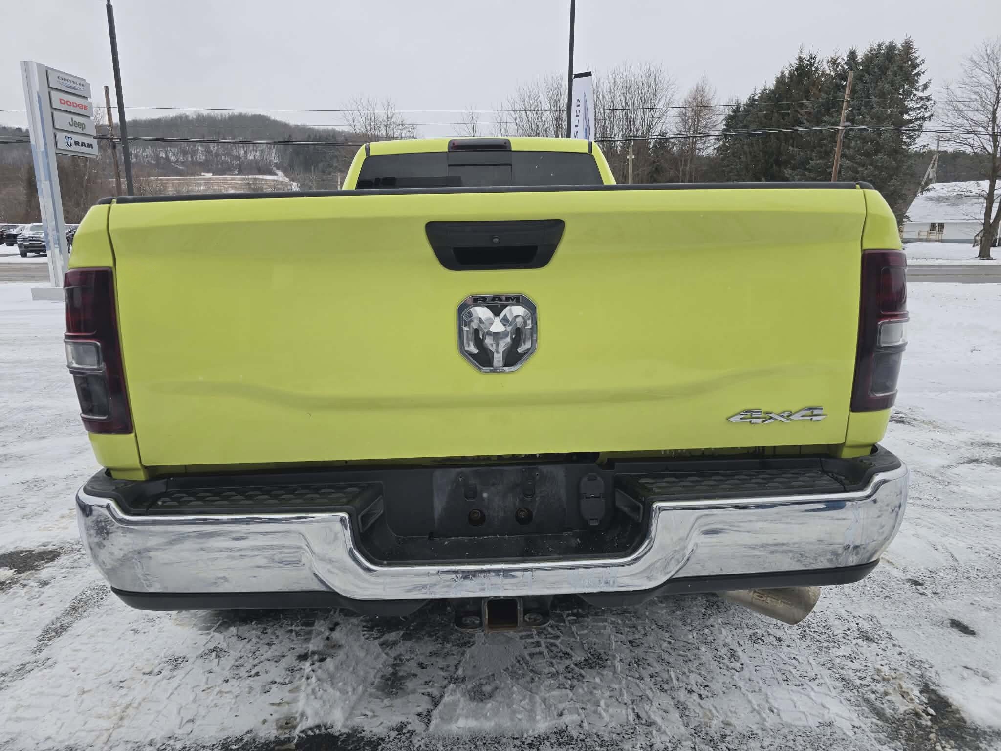 2019 Ram 2500 Tradesman - National Safety Yellow - Work-Ready Beast! Stand out on the job site with this eye-popping National Safety Yellow 2019 Ram 2500 Tradesman 4WD, a heavy-duty hauler powered by the stout 6.4L HEMI V8 with MDS for impressive power and efficiency, paired to an 8-speed automatic transmission. This Tradesman is upgraded with the Chrome Appearance Group (chrome grille surround, bright front/rear bumpers, matte black mesh grille with chrome accents), Chrome Clad 18" steel wheels, fold-away power heated mirrors, rear sliding window, remote keyless entry, speed-sensitive power locks, SiriusXM satellite radio, and the Tradesman Level 2 Equipment Group plus Snow Chief Group for added utility. The cabin offers practical comfort with a cloth 40/20/40 split bench seat, carpet flooring, overhead console with cupholder lamp, upgraded door trim panels, front armrest with cupholders, and auxiliary switches for easy accessory control. Freshly serviced with a new oil change, this durable Ram 2500 is built for towing.