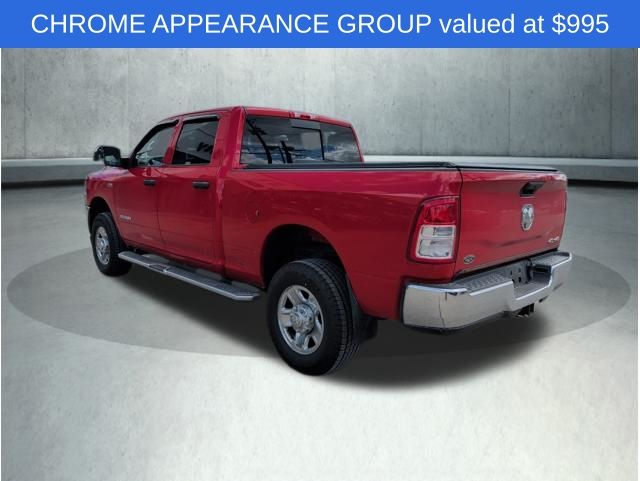 This rugged and versatile vehicle is ready to test. The powerful 6.4L HEMI V8 engine, paired with an 8-speed automatic transmission and 4-wheel drive, provides the muscle you need to conquer any terrain. The Snow Chief Group and Protection Group further enhance the vehicle's capabilities, with features like an anti-spin differential rear axle, transfer case skid plate shield, and tow hooks. The Chrome Appearance Group elevates the exterior with a bright front and rear bumper, chrome grille surround, and 18-inch chrome-clad steel wheels, giving this Ram 2500 Tradesman a bold and distinctive look. The chrome flat wheel-to-wheel side steps and power-adjustable and heated tow mirrors further enhance the vehicle's utility and style.