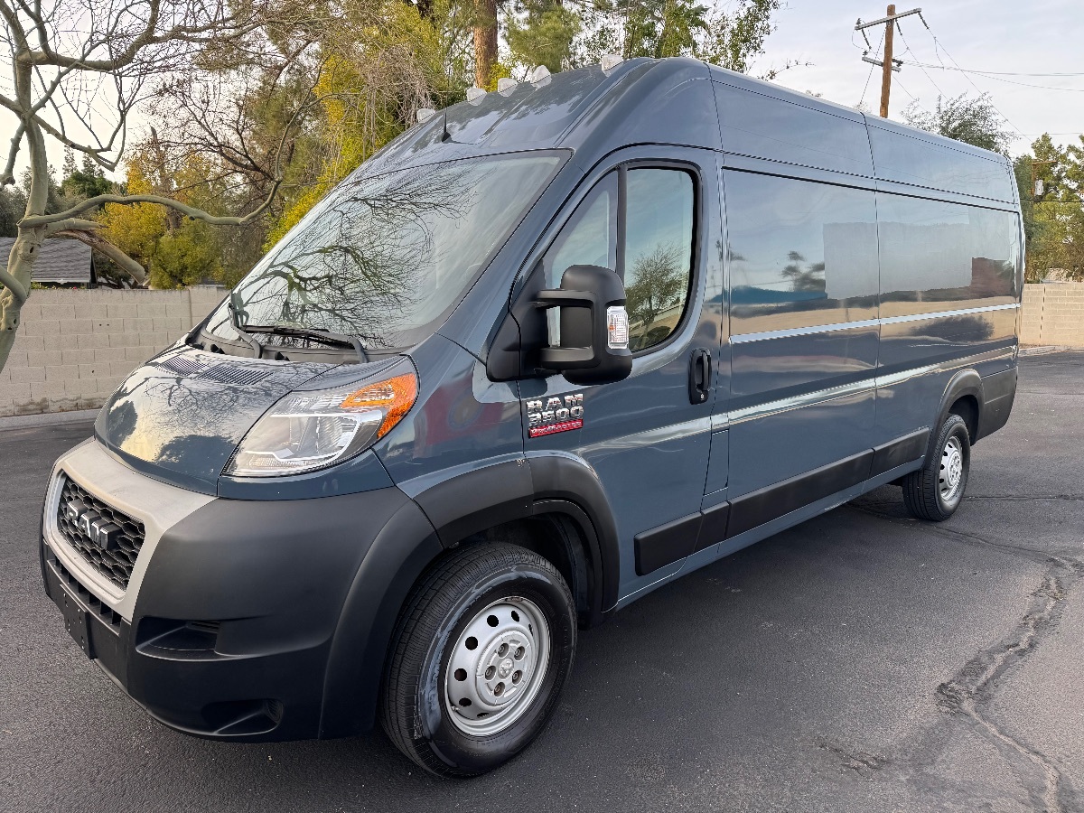Get acquainted with your fresh business partner, our One owner 2019 Ram ProMaster 3500 High Roof in Blue that provides superior on-the-job performance! Powered by a 3.6 Liter Pentastar V6 delivering 280hp matched to a 6 Speed Automatic transmission. This Front Wheel Drive van can handle massive payloads while still being nimble enough to quickly maneuver on crowded streets or loading docks. The heavy-duty suspension and nimble turning circle help to keep your business moving smoothly, no matter the circumstances. Intelligently designed with 49-inch openings on the sliding doors and a rear 60-inch doorway with doors that swing open 260 degrees, nothing will get in the way of working efficiently. Plus, with a best-in-class cargo floor-to-ground step-in height of only 21 inches and ample space, our ProMaster 3500 offers plenty of customization possibilities to fulfill your needs to get the job done right. Inside our 3500, functionality abounds with comfortable cloth bucket seats, air conditioning, power windows and locks, keyless entry, and cleverly placed storage cubbies. You'll appreciate the smooth ride and impressive handling as you listen to your favorite tunes on a four-speaker sound system with a USB and auxiliary audio jack. Not only is this Ram space-efficient and user-friendly, but it is also safe with ABS, airbags, and a solid build! You can depend on our Ram 3500 ProMaster Cargo to help keep your business moving in the right direction. Don't delay--save this Page and Call for Availability. We Know You Will Enjoy Your Test Drive Toward Ownership!