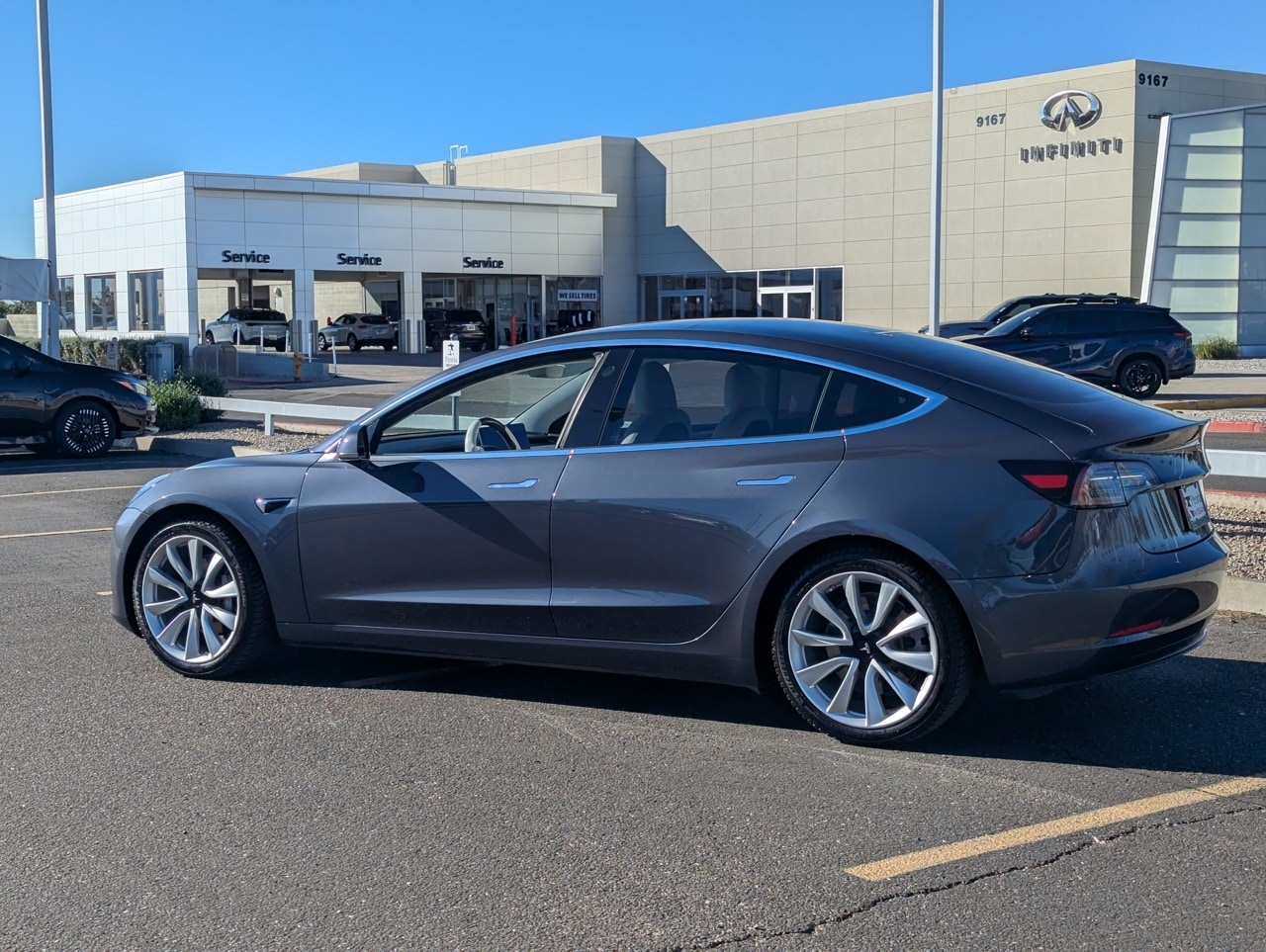 Midnight Silver Metallic 2019 Tesla Model 3 Long Range Electric Motor AWD We provide 145 point inspection on all our used vehicles. It's our mission to faithfully serve our Phoenix-area friends and neighbors, including Sun City, Surprise, Chandler, Avondale, Glendale, Scottsdale, Cave Creek, Mesa, Tempe, Flagstaff, Payson, and Prescott.