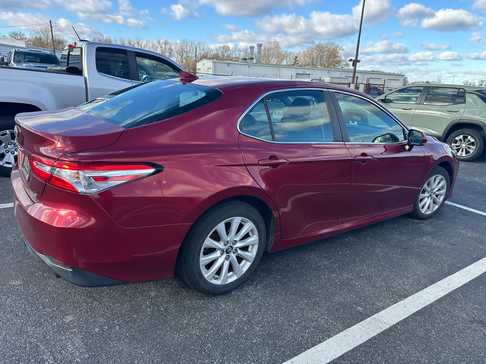 Non-Smoker vehicle, Ruby Flare Pearl exterior and Black interior. Excellent Condition. Apple CarPlay, Onboard Communications System, Back-Up Camera, Aluminum Wheels, iPod/MP3 Input, Non-Smoker vehicle. Service Work completed on this Toyota Camry included: Complete Multi-Point Inspection, Oil & Filter Change by a Factory Trained Technician, Battery Voltage Test, Tires Inspected, Brake Inspection, Emissions System Check, Professional Detailed Inside and Out, Function Test all Lights, Check the Complete Exhaust System, Cooling System Inspection, Transmission Fluid Inspection, Differential Fluid Inspection, Function Test all Options & Accessories. On the highway, the Camry is comfortable and compliant. The Camry's big, comfortable seats, smooth ride and powerful climate control mean a pleasant experience for passengers of most sizes.
