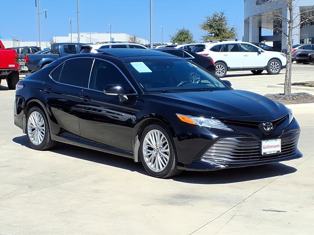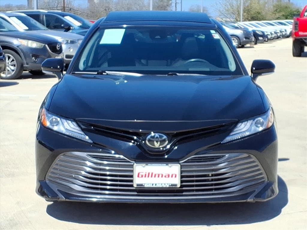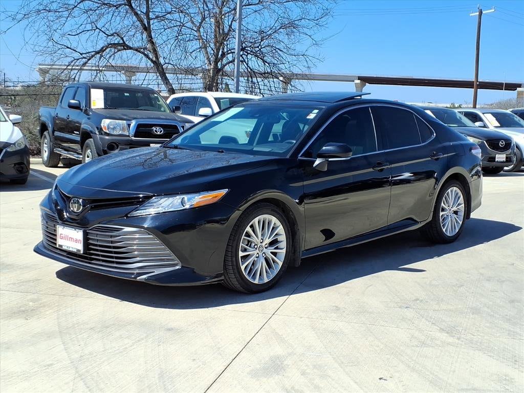 Gillman's Lifetime Engine Warranty lasts as long as you own your vehicle - free with the Gillman Pre-Owned Promise. If the vehicle isn't right for you, return it in purchase condition within 2 days or 200 miles as part of our Happy-Driving Guarantee. (Valid on vehicles under 90,000 miles and less than 7 years old). Experience luxury and power in this black 2019 Toyota Camry XLE V6 Sedan. Enjoy a smooth drive with a robust 3.5L V6 engine paired to an 8-speed automatic transmission and front-wheel drive. This Camry comes loaded with premium features, including leather-trimmed upholstery, heated power front seats, panoramic sunroof, and JBL premium sound. Safety is top-notch with adaptive cruise control, lane keeping assist, blind spot monitoring, rear cross traffic alert, and automatic emergency braking with pedestrian detection. Stay connected with an 8-inch touchscreen, Apple CarPlay, Amazon Alexa, Bluetooth, Wi-Fi hotspot, and navigation. Additional highlights include wireless charging, push-button start, dual-zone automatic climate control, and a rearview camera. With stylish aluminum alloy wheels and LED headlights, this Camry XLE delivers both elegance and performance. Don't miss out on this well-equipped and sophisticated sedan-schedule your test drive today! All vehicles subject to prior sale. We are not responsible for typographical errors and may change information without notice. Photos may not depict the actual vehicle. Tax, title, and license fees not included. Dealer Discount available to all buyers.Vehicles purchased from Gillman Automotive Group include a Bring It Back Guarantee: return the vehicle in purchase condition within two days or 200 miles. New current-model-year vehicles and qualifying pre-owned vehicles (under 90,000 miles and less than 7 years old) are eligible.