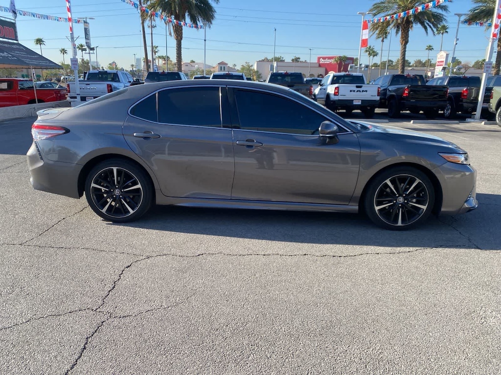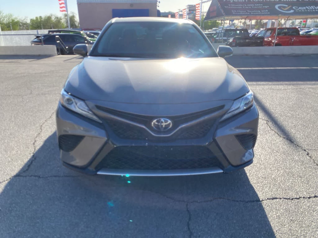 Sculpted in beautiful Predawn Gray Mica, our Accident Free 2019 Toyota Camry XSE Sedan offers bold style, impressive amenities, and incredible performance. Powered by a 2.5 Liter 4 Cylinder that produces 203hp paired with a sophisticated 8 Speed Automatic transmission for quick and easy passing authority. This Front Wheel Drive sedan achieves nearly 39mpg on the highway as it impresses you with powerful acceleration and handling. Athletic and graceful, a stunning shape accents the exterior of the Camry. You will be immediately attracted to the gloss-black front grille with sport mesh insert, alluring 19-inch black machined-finish alloy wheels, and rear spoiler. Slide into the luxurious XSE leather heated front seating as you savor ergonomically designed features, including a 7-inch touch-screen display, Entune 3.0 Audio with connected full-color navigation and App Suite, Bluetooth®, and a wonderful six-speaker sound system with steering wheel-mounted controls. You will also appreciate remote keyless entry, cruise control, a rearview camera, a tilt-and-telescoping steering wheel, and split-folding rear seats. Good looks, amazing handling, and the roomy interior make this Camry an absolute joy. Toyota offers a blind-spot monitor, adaptive cruise controls, automatic emergency braking, lane-keeping assistance, stability/traction control, ABS, and an army of airbags to safeguard you in this impeccable Camry XSE sedan. Save this Page and Call for Availability. We Know You Will Enjoy Your Lithia Sahara Chrysler Dodge Ram L0517 Test Drive Towards Ownership! Must finance with Chrysler Capital for all discounts to be applied.