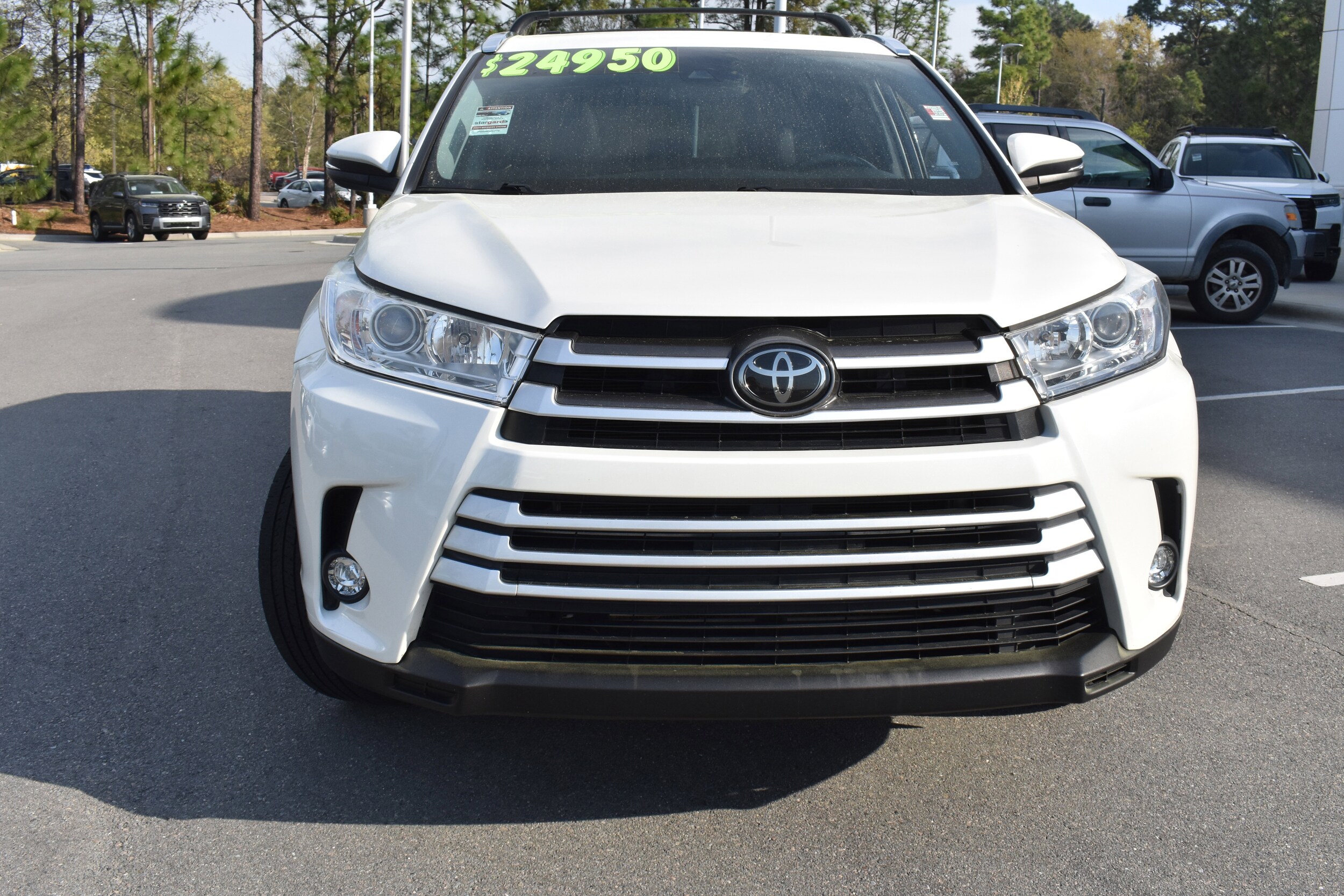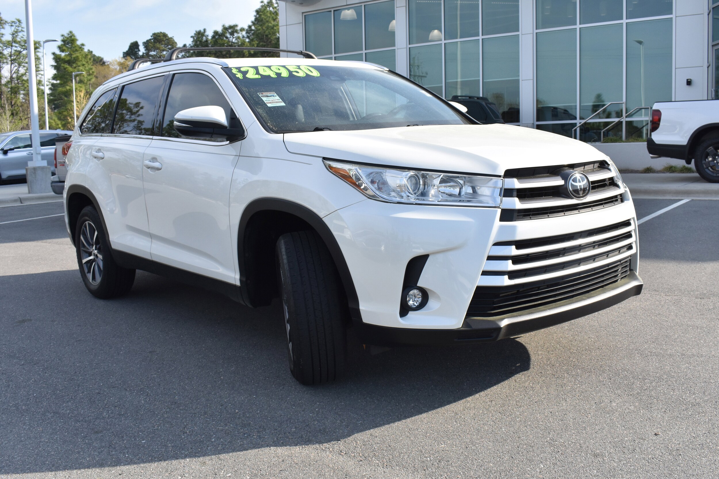 Clean CARFAX. Blizzard Pearl 2019 Toyota Highlander XLE FWD 8-Speed Automatic Electronic with ECT-i 3.5L V6 3.003 Axle Ratio, 3rd row seats: split-bench, 4-Wheel Disc Brakes, 6 Speakers, ABS brakes, Active Cruise Control, Air Conditioning, Alloy wheels, AM/FM radio: SiriusXM, Auto High-beam Headlights, Auto-dimming Rear-View mirror, Automatic temperature control, Brake assist, Bumpers: body-color, CD player, Delay-off headlights, Dual front impact airbags, Dual front side impact airbags, Electronic Stability Control, Exterior Parking Camera Rear, Four wheel independent suspension, Front anti-roll bar, Front dual zone A/C, Front fog lights, Fully automatic headlights, Garage door transmitter, Heated door mirrors, Heated Front Bucket Seats, Heated front seats, Illuminated entry, Knee airbag, Leather Seat Trim, Leather Shift Knob, Low tire pressure warning, Navigation System, Occupant sensing airbag, Outside temperature display, Overhead airbag, Panic alarm, Power door mirrors, Power driver seat, Power Liftgate, Power moonroof, Power passenger seat, Power steering, Power windows, Radio: Entune Premium Audio w/Nav & App Suite, Rear air conditioning, Rear anti-roll bar, Rear window defroster, Rear window wiper, Reclining 3rd row seat, Remote keyless entry, Roof rack: rails only, Security system, Speed control, Speed-sensing steering, Split folding rear seat, Spoiler, Steering wheel mounted audio controls, Tachometer, Telescoping steering wheel, Tilt steering wheel, Traction control, Trip computer, Turn signal indicator mirrors, Variably intermittent wipers, Wheels: 18" Turbine-Look Alloy. Recent Arrival! Odometer is 15984 miles below market average! 21/27 City/Highway MPG Awards: * 2019 KBB.com Best Resale Value Awards * 2019 KBB.com 12 Best Family Cars * 2019 KBB.com Brand Image Awards "It's Easier Here" at Leith Aberdeen. We're proud to serve Sanford, Southern Pines, Pinehurst, and Fayetteville North Carolina. With one of the largest sources of inventory in North Carolina combined with commitment to serve, Leith gets you on the road with a pre-owned vehicle with a no-hassle and no-pressure environment.