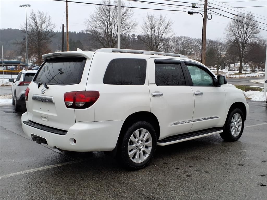 Elevate your drive with this powerful 2019 Toyota Sequoia Platinum, located in Indiana PA. Equipped with a robust V8 5.7L gasoline engine and full-time 4WD, this Toyota Sequoia delivers confidence on highways and rugged routes alike. The Platinum trim brings luxury and capability together — premium leather seating, spacious third-row comfort, and advanced safety features make every trip superior. This Toyota Sequoia includes Blind Spot Monitor and Cross-Traffic Alert to help you change lanes and back out of tight spots with ease. Rear Parking Sensors further simplify parking in busy lots or residential streets. Stay connected with Hands Free Bluetooth for calls and media streaming, while Automatic Climate Control keeps the cabin at ideal comfort for all passengers. Additional creature comforts and tech conveniences create a refined driving experience for families and road-trip lovers. Located in Indiana PA, this Toyota Sequoia Platinum is competitively priced — confidently offered at the best price for comparable vehicles in the area. If you want a full-size SUV with a commanding V8, 4WD traction, top-tier safety tech, and upscale interior features, this 2019 Toyota Sequoia stands out as a smart, value-packed choice. Contact us to schedule a test drive in Indiana PA and see why this Toyota Sequoia Platinum with V8 power and advanced safety features is the best value available today.