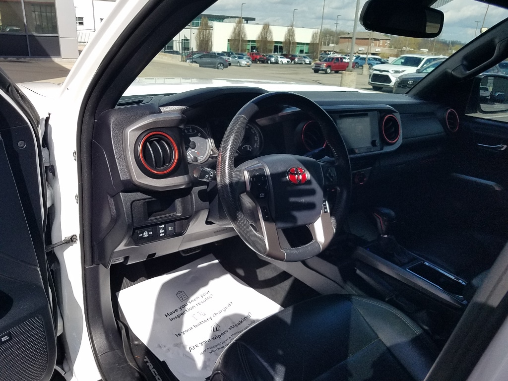 Welcome to Lewis Toyota in Topeka, KS. All of our cars are hand picked and inspected for your piece of mind. This Toyota Tacoma's blind spot monitor enhances safety. You'll never again be lost in a crowded city or a country region with the navigation system on this model. This small pickup features a hands-free Bluetooth phone system. This small pickup offers Automatic Climate Control for personalized comfort. The state of the art park assist system will guide you easily into any spot. The leather seats in this 2019 Toyota Tacoma are a must for buyers looking for comfort, durability, and style. This vehicle's Cross-Traffic Alert: Safeguarding you from unexpected traffic when reversing. See what's behind you with the back up camera on the vehicle. Maintaining a stable interior temperature in this unit is easy with the climate control system. This small pickup shines with clean polished lines coated with an elegant white finish. This model has four wheel drive capabilities. The Toyota Tacoma has a V6, 3.5L high output engine.