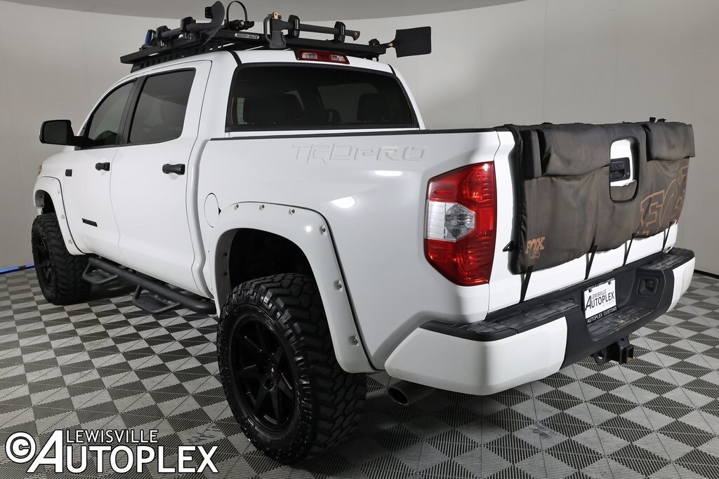 Pre-Qualify for Low Finance Rate & 100k Mile Extended Service Plan, 90 Day/3k Mile Limited Warranty, Free Clean CARFAX Report, Autoplex No Haggle Price! 2019 Toyota Tundra TRD Pro CUSTOM. This Toyota Features: ReadyLift Lift Kit, Premium TRD Tuned Fox Shocks, 20" Vossen Wheels, Nitto Trail Grappler M/T Tires - 35X12.50R20LT, Rhino Rack Roof Rack w/ Tool Attachments, Lund Front Bumper Bull Bar w/ LED Light, Custom Fender Flares, Fox Racing Tailgate Protector, Navigation, Rear Backup Camera, Lane Keep Assist, Bluetooth, Super White Exterior, Black Leather Seats, Spray-in Bedliner, 4-Wheel Drive, Auto Transmission, i-Force 5.7L V8 Engine, and much more. Odometer is 58784 miles below market average! Awards: 2019 KBB.com Brand Image Awards, 2019 KBB.com Best Resale Value Awards. We perform a quality 125-pt inspection, which means that your Pre-Owned vehicle will be in Top Condition when you drive it home. We are a CarFax Advantage Dealer, committed to offering CarFax reports with every used car we sell. Stop shopping and start driving! Our Internet Special is Priced to Move Fast---so act quickly! Financing available in all 50 states! Located ten minutes north of DFW Airport and Downtown Dallas off I-35.