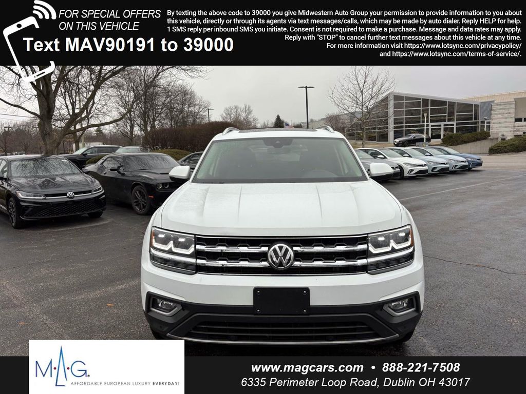 Pure White 2019 Volkswagen Atlas SEL 4Motion AWD 8-Speed Automatic with Tiptronic 3.6L V6, 87,016 mi., 20" Silver Triple 5-Spoke Wheels, Electronic Stability Control, Forward collision: FCW w/Autonomous Emergency Braking mitigation, Heated Comfort Front Bucket Seats, Heated steering wheel, Memory seat, Navigation System, Power driver seat, Power Liftgate, Radio: Discover Media 8.0" Touchscreen w/Nav, Rain sensing wipers, Roof rack: rails only, Wheels: 20" Silver Triple 5-Spoke Alloy. Recent Arrival! Odometer is 3171 miles below market average!