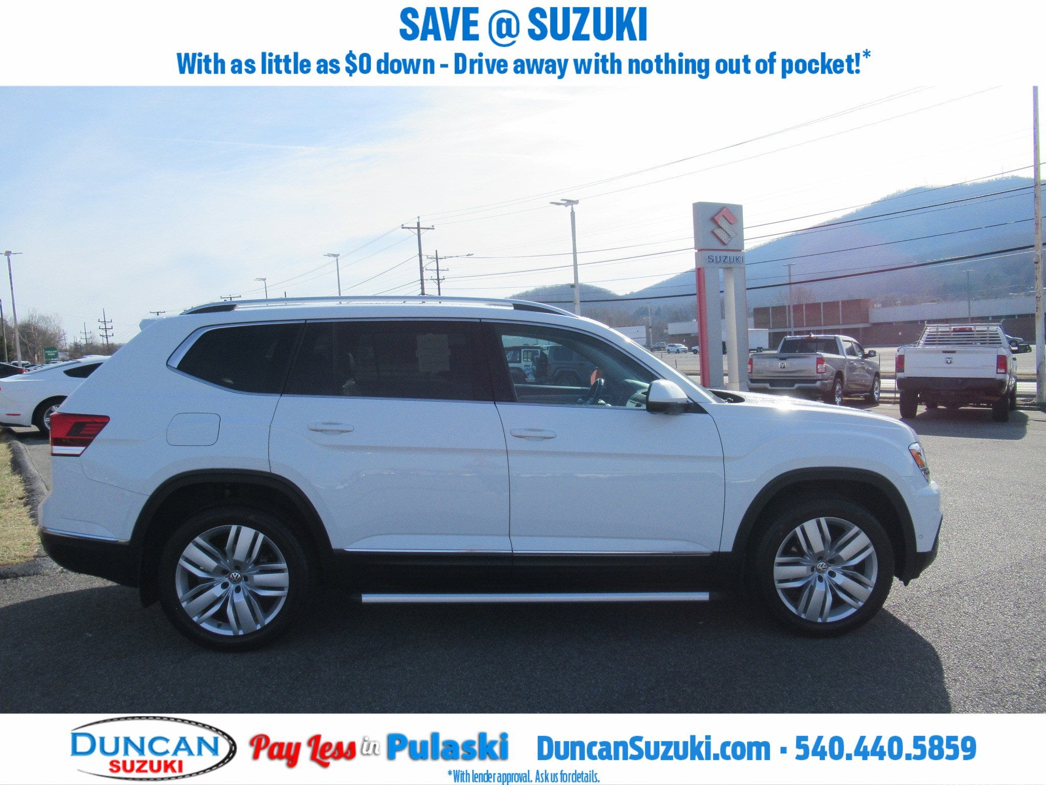Recent Arrival! Clean Carfax. Pure White 2019 Volkswagen Atlas SEL Premium 3.6L V6 8-Speed Automatic with Tiptronic AWD 17/23 City/Highway MPG. To check availability or schedule a test drive call (540) 980-6065. Remember Pay Less in Pulaski! Thank you for taking the time to look at this good-looking 2019 Volkswagen Atlas.