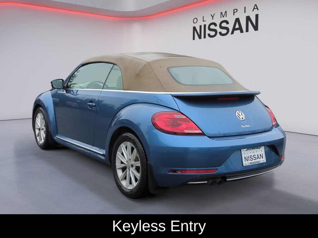 This 2019 Volkswagen Beetle Convertible 2.0T SE offers the perfect blend of style, performance, and convenience. With its striking blue exterior, this Beetle Convertible is sure to turn heads wherever you go. Under the hood, the 2.0L TSI engine and 6-Speed Automatic with Tiptronic transmission provide a responsive and efficient driving experience, delivering 26 city/33 highway MPG. This Beetle Convertible is packed with features that add both convenience and comfort to your daily drives. Dual-zone climate control, heated front seats, and a rearview camera are just a few of the thoughtful amenities that will make your time behind the wheel a pleasure. The convertible design allows you to soak up the sun and enjoy the open-air experience, perfect for scenic drives or cruising around town. With low mileage and a clean CARFAX history, this 2019 Volkswagen Beetle Convertible 2.0T SE represents an exceptional value. We invite you to visit our dealership and experience the Olympia Nissan difference. Our knowledgeable and friendly sales team is ready to answer any questions you may have and help you find the perfect vehicle to fit your lifestyle and budget. Don't miss out on this opportunity to own a head-turning convertible that delivers both style and substance.