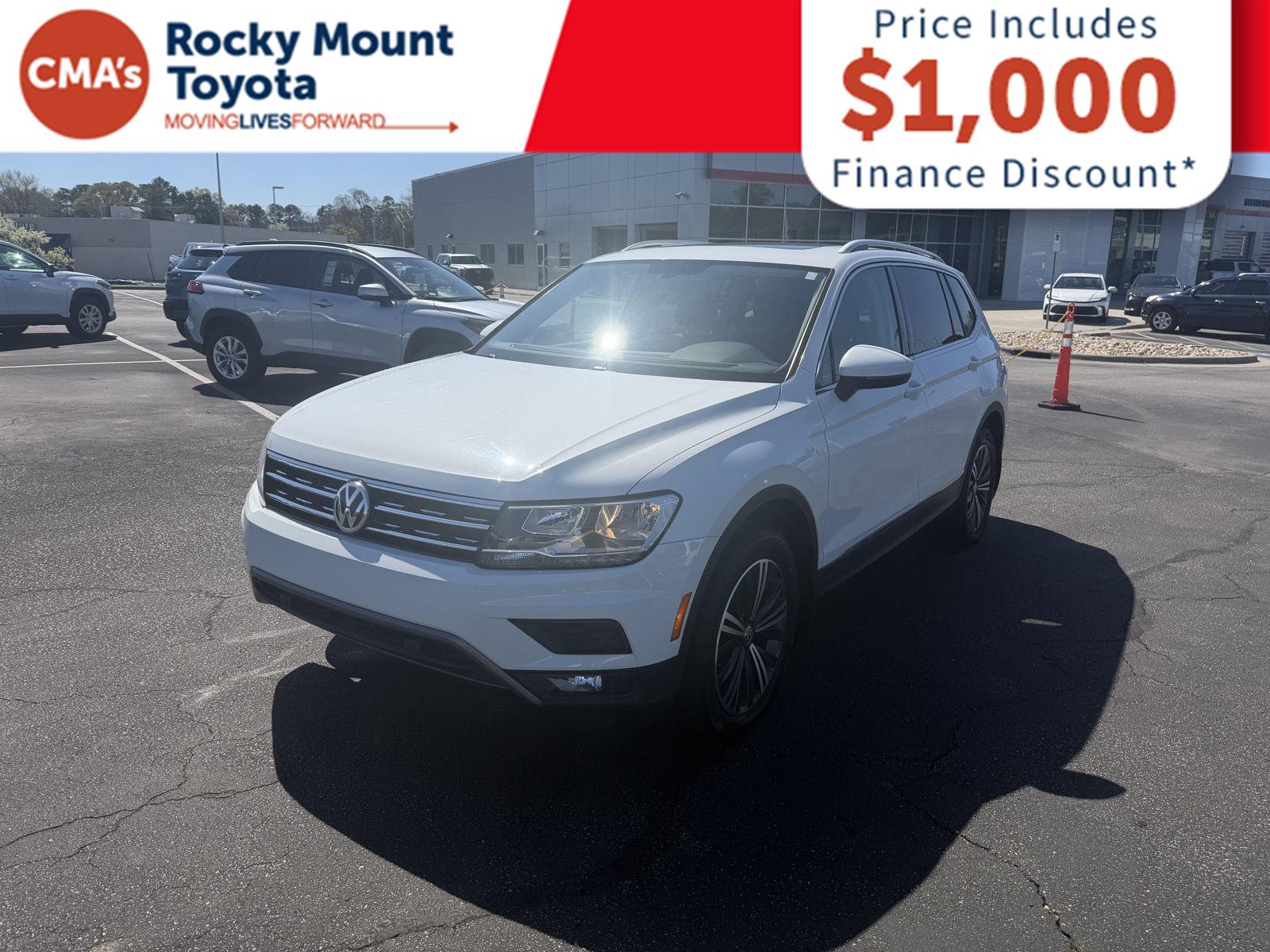 Thank you for choosing CMA's Rocky Mount Toyota, this Pure White 2019 Volkswagen Tiguan is a great choice! Check out the features and options for this vehicle. The best value price is possible. The best way to drive is to drive your car. The best way to drive is to drive your car. The highest price is to drive your car. The best way to drive is to drive your car. The highest price is to drive your car.
