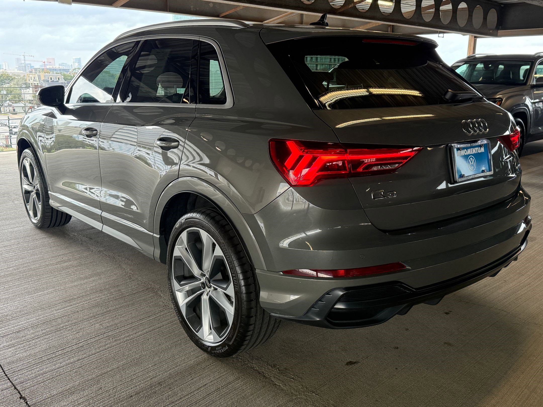 Step into the 2020 Audi Q3 S line Premium Plus comes equipped with navigation package, premium plus package, 20-inch wheel package, Audi Connect, Front Collision Mitigation, Back-Up Camera, Panoramic Roof, Heated Front Seats, Power Liftgate, Bluetooth Connection, Smart Device Integration, Auxiliary Audio Input, Remote Trunk Release, Multi-Zone A/C, Rain Sensing Wipers, Integrated Turn Signal Mirrors, Headlights-Auto-Leveling, Steering Wheel Audio Controls, Keyless Entry, and much more. This is a One Owner Clean Carfax vehicle. Momentum Volkswagen has been serving Houston and the surrounding communities for the last 51 years. In an effort to better serve our customers, we have expanded our VW Pre-owned showroom to showcase our inventory. We feature the largest Volkswagen Certified Pre-Owned inventory in the city of Houston. Certified technicians will carefully perform all repairs in order to give our customers the best possible product and peace of mind. We are proud to share that we have won the Wolfsburg Crest Award 5 times throughout the past 7 years, given by Volkswagen of America, Inc., honors those Volkswagen dealers that have met the highest Volkswagen standards in both service and sales. Membership in the Wolfsburg Crest Award demonstrates that we as a dealership have met the highest standards for customer satisfaction, parts sales, new vehicle sales, certified pre-owned sales, and service excellence. Service is our first priority so we welcome you to join us for a cup of coffee or tea, browse the internet, and relax in our newly remodified facility. We have a boutique full of gift ideas and a showroom full of a variety of SUVs, sedans, and coupes. Please verify any information in question with Momentum Volkswagen located at 2405 Richmond Ave, Houston, TX 77098, or give us a call at (844) 894-5462.