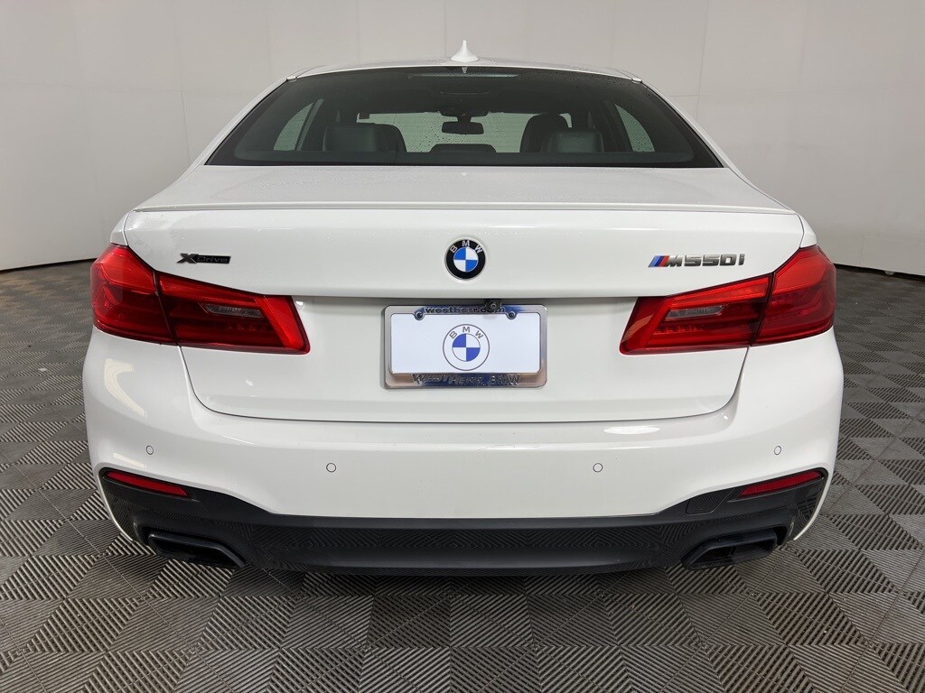 Clean CARFAX. 2020 BMW 5 Series M550i xDrive Alpine White Active Park Distance Control, Active Roll Stabilization, Adaptive M Suspension Professional, Dynamic Handling Package, Enhanced USB & Bluetooth, Front Massaging Seats, Front Ventilated Seats, Gesture Control, Head-Up Display, Integral Active Steering, Luxury Seating Package, Parking Assistance Package, Parking Assistant Plus, Premium Package, Rear-View Camera, Surround View w/3D View, Wireless Charging. Coming Soon! This vehicle has recently been acquired and we are currently processing the paperwork, servicing the vehicle, and taking more photos. It will be available for sale and delivery shortly. See a store manager for specific details on the current status. IMPORTANT RECALL INFORMATION. Some vehicles may be subject to unrepaired safety recalls. Go to www.safercar.gov to learn whether an individual vehicle is subject to an open recall. NOTICE: Price does not include applicable taxes, including sales, use and tire taxes, fees for registration, title and license plates and dealer document/service fees. Vehicle availability, pricing, and description are subject to change without prior notice. While we make every reasonable effort to provide accurate information on this site, we are not responsible for any errors or ommissions on this site and the actual description and condition of the vehicle must be verified by you at the time of purchase. Interest rates (APR) and financing terms are based on, among other things, your credit and the age, model and purchase price of the vehicle. Gas mileage ratings are based on EPA estimates and mileage will vary depending on options, driving conditions, driving habits, and fuel quality. We cannot guarantee a vehicle will be available for delivery when requested. We cannot guarantee a recall-free vehicle. For recall information please click here - website provided by NHTSA.