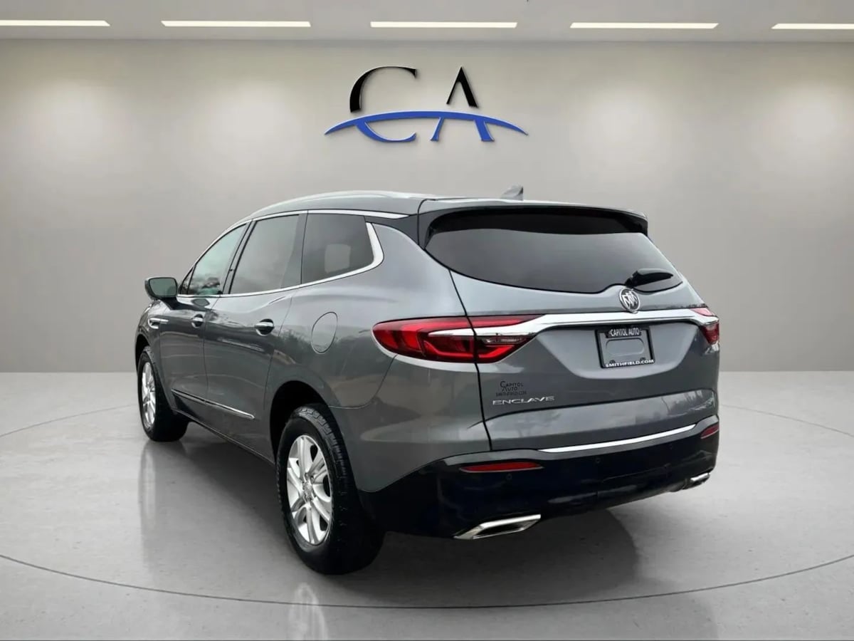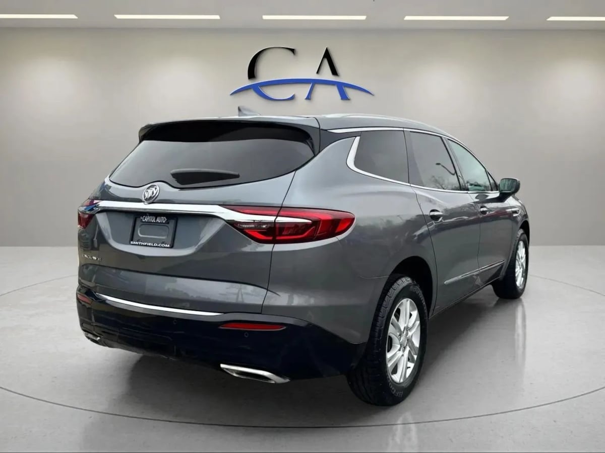 Our innovative 2020 Buick Enclave Essence is here to enhance your time on the move in Satin Steel Metallic! Powered by a 3.6 Liter V6 that offers 310hp paired with a 9 Speed Automatic transmission for precise shifts and quick acceleration! This Front Wheel Drive SUV also has an advanced suspension that minimizes impact and noise, so you can peacefully enjoy scoring nearly 26mpg on the highway, and it looks fantastic. Our family-friendly Enclave shows off LED lighting, a hands-free liftgate, 18-inch alloy wheels, a rear spoiler, and roof-mounted side rails. Inside our Essence cabin, you can enjoy soft-touch surfaces and thoughtful amenities. Check out the heated leather front seats, comfortable second/third rows, a leather-wrapped steering wheel, tri-zone automatic climate control, remote start, and ample room for family road trips. With an 8-inch touchscreen, WiFi capability, Bluetooth®, Apple CarPlay®, and Android Auto®, you're ready to take connecting to the next level as you listen to the impressive six-speaker audio system. Buick provides peace of mind while driving and protects you and your crew with a rearview camera, blind-zone alert, rear cross-traffic alert, rear parking sensors, and more. Those features mean our Enclave Essence is a superb choice for your active lifestyle with abundant space, confident performance, and sophisticated style. Save this Page and Call for Availability. We Know You Will Enjoy Your Test Drive Towards Ownership!