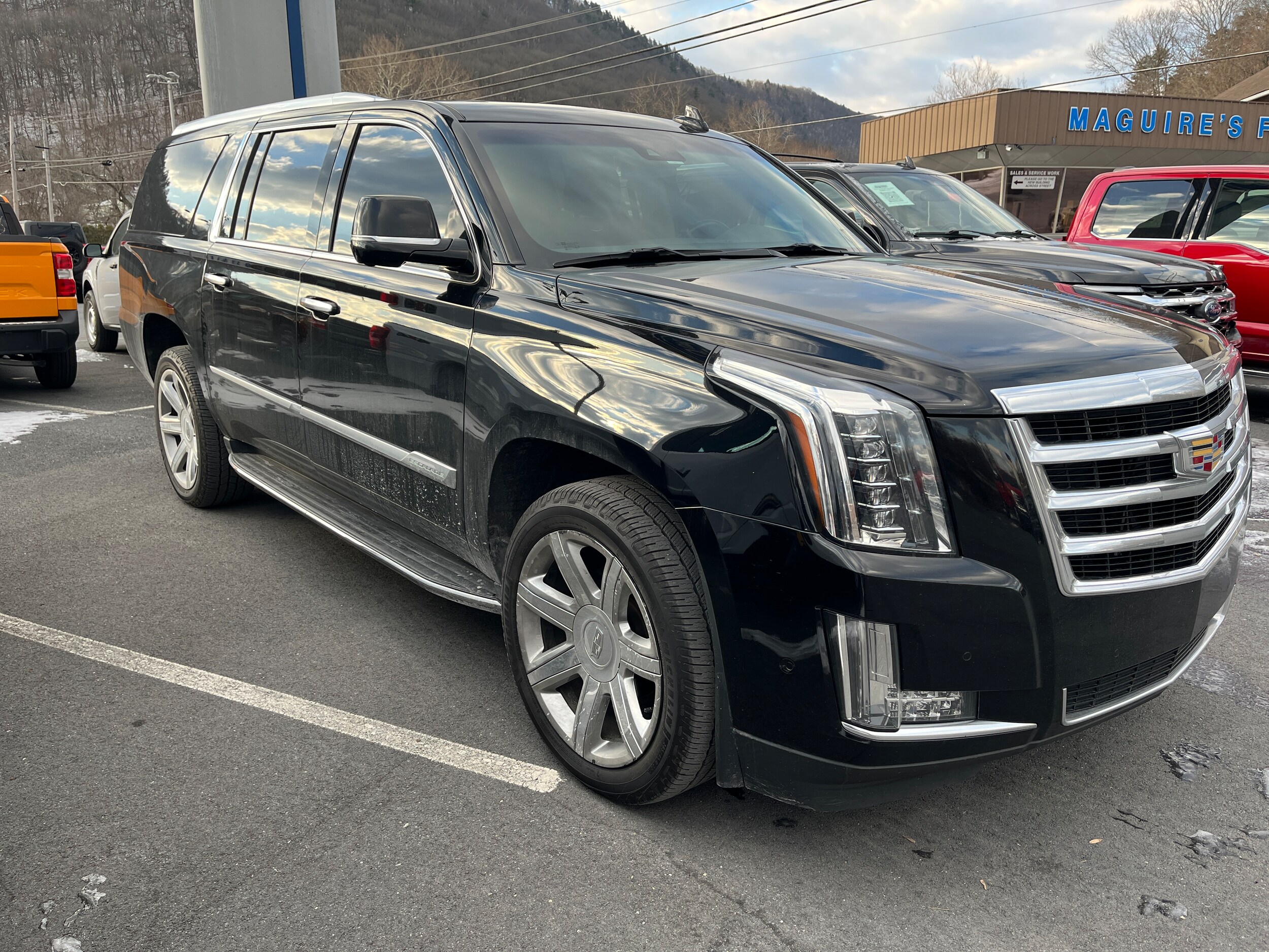 2020 Cadillac Escalade ESV Luxury 6.2L V8 Clean Autocheck, local trade, Ford Certified, 4WD, Automatic Emergency Braking, Bose Centerpoint 16 Speaker Surround Sound System, Driver Awareness Package, Exterior Parking Camera Rear, Forward Collision Alert, Heated & Cooled Driver & Front Passenger Seats, Inclination Sensor, IntelliBeam Automatic High Beam On/Off, Lane Change Alert w/Side Blind Zone Alert, Lane Keep Assist w/Lane Departure Warning, Navigation System, Power Configurable Second Row Bucket Seats, Power Liftgate, Power Tilt-Sliding Sunroof w/Express-Open/Close, Preferred Equipment Group 1SB, Rear air conditioning, Rear Camera Mirror, Rear Camera Mirror Washer, Rear Cross Traffic Alert, Reconfigurable 4-Color Head-Up Display, Remote keyless entry, Safety Alert Seat, Steering wheel memory, Steering wheel mounted audio controls, Theft-Deterrent Alarm System, Theft-Deterrent Package, Vehicle Interior Movement Sensor, Wheels: 22" x 9" 7-Spoke Alloy w/Chrome Inserts. Stop by today and see why Maguire's means more! Call us at 1-717-834-3111 or visit us on the web at www.maguiresduncannon.com. All vehicles are subject to prior sale. Price does not include applicable tax, title, license, processing and/or documentation fees of $490.