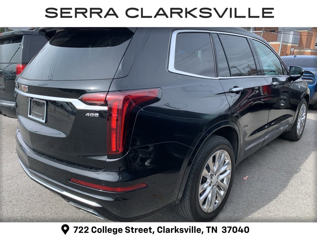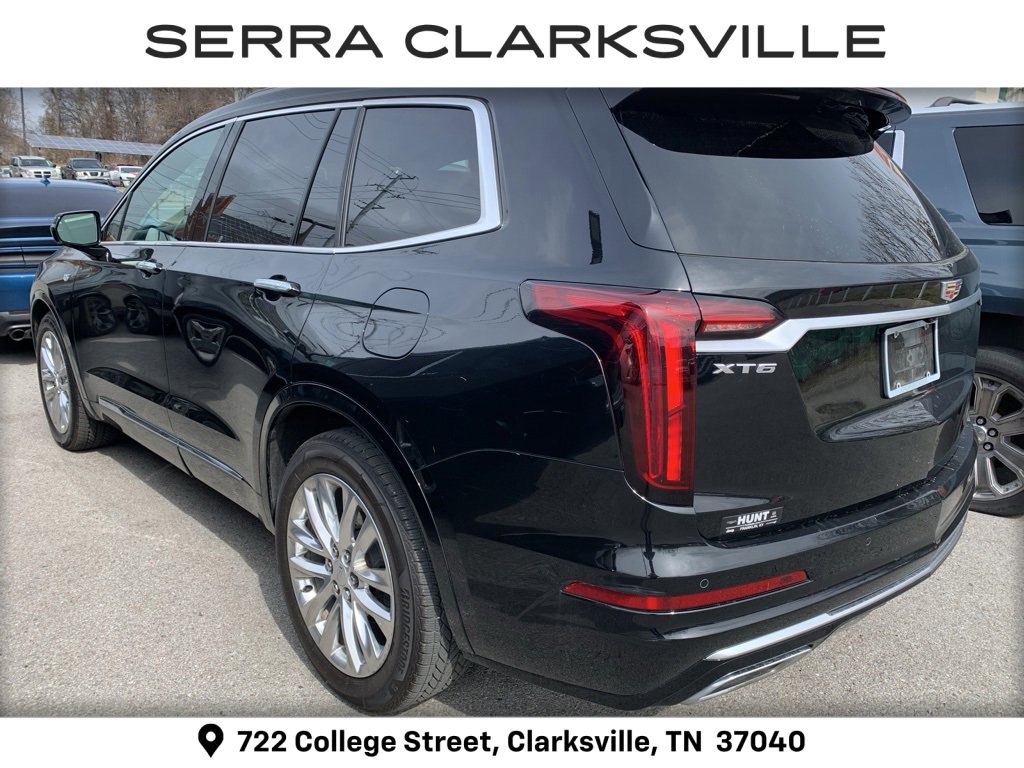 Clean Carfax. Stellar Black Metallic 2020 Cadillac XT6 Premium Luxury. The Pre-Owned 2020 Cadillac XT6 Premium Luxury with 3.6L V6 DI VVT at Serra Clarksville. Well equipped: Comfort & Air Quality Package (Air Ionizer, Heated Rear Outboard Seating Positions, and Ventilated Driver & Front Passenger Seats), Premium Luxury Package 1SC (Automatic Emergency Braking, Bose Premium 8-Speaker Audio System, Front & Rear Park Assist, and Teen Driver), Radio: Cadillac User Experience w/Embedded Nav (Bose Performance Series Audio System and SiriusXM w/360L), 2-Way Power Driver Lumbar Control Seat Adjuster, 2-Way Power Passenger Lumbar Control Seat Adjuster, 3rd row seats: split-bench, 4-Wheel Disc Brakes, 6-Passenger Seating, 8 Speakers, ABS brakes, Air Conditioning, Alloy wheels, AM/FM radio: SiriusXM, AppLink/Apple CarPlay and Android Auto, Audio memory, Auto High-beam Headlights, Auto tilt-away steering wheel, Auto-dimming door mirrors, Auto-dimming Rear-View mirror, Automatic Stop/Start w/Disable, Automatic temperature control, Brake assist, Bumpers: body-color, Cadillac Edition First Aid Kit (LPO), Compass, Delay-off headlights, Delay-off rear window lights, Compass. Default to "Clean" part of the title.