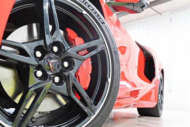 The 2020 Chevrolet Corvette 2LT Coupe in Torch Red with an Adrenaline Red interior is a high-performance vehicle with a clean Carfax and only one owner. It features a 6.2L V8 engine and an 8-speed automatic transmission. The Z51 Performance Package includes enhanced braking, suspension, and exhaust systems.