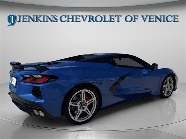 Used 2020 Chevrolet Corvette Stingray w/3LT Convertible. Pre-Owned vehicle with 13,060 miles. Features a V-8 engine and rear-wheel drive. The Corvette is a high-performance sports car with a convertible body and seating for two. It offers a premium driving experience with advanced features and a striking Elkhart Lake Blue Metallic exterior.