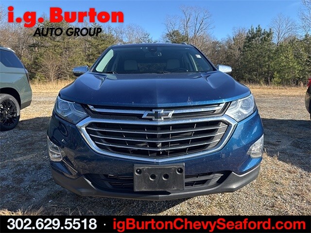 Recent Arrival! 2020 Chevrolet Equinox Premier Pacific Blue Metallic Clean CARFAX. CARFAX One-Owner. Awards: 2020 IIHS Top Safety Pick with specific headlights. Since 1908, i.G. Burton Auto Group has served Delmarva and its surrounding communities with outstanding sales and service as its longest-standing family-owned and operated dealer group. See why we proudly say, "Nobody Beats a Burton Deal! NOBODY!"