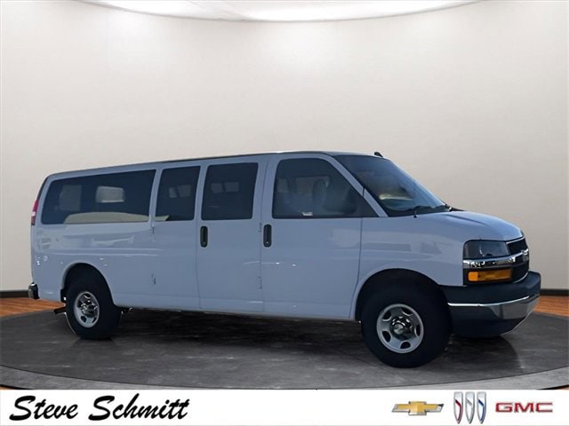 2020 Chevrolet Express 3500 LT Passenger Summit White Priced below KBB Fair Purchase Price! Odometer is 16755 miles below market average! If you're looking for a new car, truck or SUV near St. Louis or Edwardsville, then look no further than Steve Schmitt Inc. At our Highland dealership, we have a large variety of Chevy, Buick, and GMC models, all just ripe for the picking. Steve Schmitt has delivered four generations of Customer Service...right here in Highland! Steve Sr. Plays an active role in the dealership as well as the community, and Steve Jr. Manages the day-to-day operations. At Steve Schmitt Chevy Buick GMC, it is more than a name on a sign...it is our family looking forward to exceeding your family's expectations! This vehicle includes the following features Chrome Appearance Package (Chrome Grille and Front & Rear Chrome Bumpers w/Step-Pad), Preferred Equipment Group 1LT (Deluxe Console w/Swing Out Storage Bin, Forward Collision Alert, Full-Floor Color-Keyed Carpeting, Lane Departure Warning System, Remote Keyless Entry, Theft Alarm Notification, and Wheel Trim w/Chrome Center Caps), 12-Passenger Seating (2-3-3-4 Seating Config), 15-Passenger Seating (2-3-3-3-4 Seating Config), 16 x 6.5 Steel Wheels, 2 Speakers, 3.42 Rear Axle Ratio, 3rd row seats: bench, 4-Wheel Disc Brakes, 4th-Row Bench Seat, ABS brakes, Air Conditioning, AM/FM radio, AM/FM Stereo w/MP3 Player, Bumpers: chrome, Compass, Custom Cloth Seat Trim, Delay-off headlights, Driver door bin, Driver vanity mirror, Driver's Seat Mounted Armrest, Dual front impact airbags, Dual front side impact airbags, Electronic Stability Control, Emergency communication system, Exterior Parking Camera Rear, Front anti-roll bar, Front Bucket Seats, Front reading lights, Front wheel independent suspension, Fully automatic headlights, Heavy-Duty Rear Locking Differential, Illuminated entry, Low tire pressure warning, Occupant sensing airbag, Overhead airbag, Panic alarm, Passenger cancellable airbag, Passenger door bin, Passenger seat mounted armrest, Passenger vanity mirror, Power steering, Power windows, Power-Adjustable Black Outside Heated Mirrors, Rear air conditioning, Rear reading lights, Reclining.