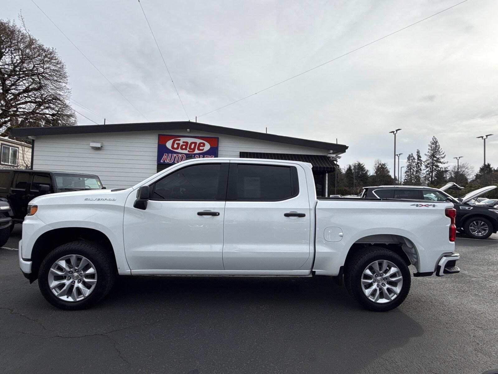 This 2020 Chevrolet Silverado 1500 Custom 4x4 Crew Cab 5.8 ft. SB is a vehicle that is sure to turn heads. With a summit white exterior and jet black interior, this car has a luxurious look and feel. It has driven 92,744 miles and comes with a 4.3 liter EcoTec3 Flex Fuel V6 285hp 305 lb-ft engine, direct injection, giving it an impressive fuel economy of 15 mpg in the city and 20 mpg on the highway. It also has a crash test rating of 4 out of 5 stars, making it even more reliable. The carfax report is available for review so you can be sure of its condition. It also comes with many features such as touch screen display, Bluetooth audio connection, hill start assist, part time with on demand four wheel drive, Apple Carplay ready, and Bluetooth phone connectivity. This car is truly one of a kind! Contact Details: Gage Auto Sales, 13432 SE McLoughlin Blvd., Milwaukie, OR, 97222, sales@gageauto.dealerspace.com, (888) 205-6257.
