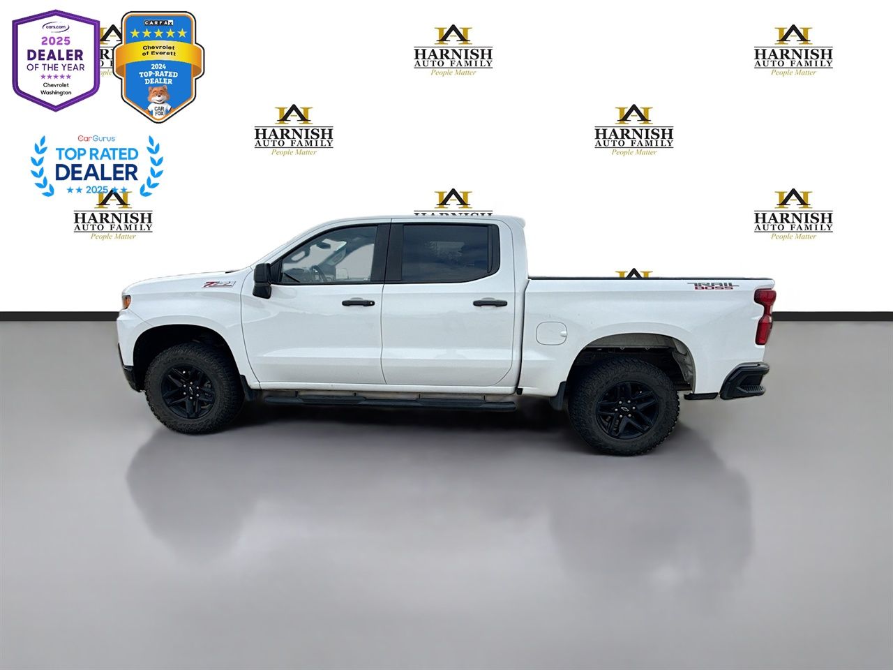 2020 Chevrolet Silverado 1500 Custom Trail Boss - 5.3L V8 Power - Clean CARFAX History. Optional equipment on this Trail Boss includes the 5.3L EcoTec3 V8 engine for stronger towing and acceleration, an integrated trailer brake controller for added confidence when hauling, and an engine block heater that helps ensure reliable cold starts during Pacific Northwest winters. This Silverado comes with a clean CARFAX vehicle history report showing no accidents or damage reported. It has been owned as a personal vehicle, last owned in Washington, and shows documented service history with routine maintenance performed locally, giving added peace of mind for buyers in Everett, Lynnwood, Marysville, and Snohomish. This 2020 Chevrolet Silverado 1500 Custom Trail Boss is a 4D Crew Cab with 4WD, powered by the proven 5.3L EcoTec3 V8 paired with a 6-speed automatic electronic transmission with overdrive. With approximately 62,558 miles, Summit White exterior, Jet Black interior, and the factory Trail Boss off-road package, it stands out as a capable and aggressive full-size truck ready for work or adventure. The 5.3L V8 delivers strong, confident power that's ideal for towing trailers, hauling gear, or merging onto I-5 with ease. Four-wheel drive and the Trail Boss off-road suspension with factory lift provide added traction and stability on wet roads, gravel, or uneven terrain. Chevrolet of Everett.