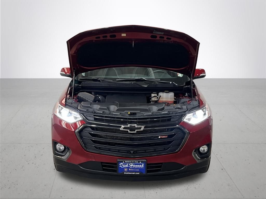 Cajun Red Tintcoat 2020 Chevrolet Traverse RS AWD 9-Speed Automatic 3.6L V6 SIDI VVT. Clean Carfax. One Owner. Rear Park Assist. 8" Touchscreen Display. Lane Change Alert with Side Blind-Zone Alert. HID Headlamps. 7-Passenger Seating (2-2-3 Seating Configuration). Bose Premium 10-Speaker Audio System Feature. Dual SkyScape 2-Panel Power Sunroof. Heated front seats. Heated Steering Wheel. Peace of mind warranty: Rest easy - you're covered for 12 months or 12,000 miles on many of your vehicle maintenance items including battery, brake pads, belts & hoses, wiper blades. In addition, each Dick Hannah used vehicle comes with a powerful 3 month/3,000 mile power train warranty which covers engine, transmission, drivetrain. You can breathe easy knowing that your unexpected repairs will be covered. See dealership for full warranty details.