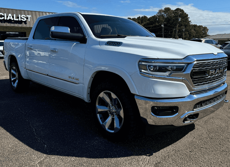 2020 Ram 1500 Limited Crew Cab - White Exterior, Pearl Interior, 5.7L Gasoline V8 Engine. Unique suspension delivers unequaled ride smoothness and control, cabin is roomy, quiet and laden with useful storage and tech features. It has standard premium-leather bucket seats, a leather-wrapped wood steering wheel, and a spray-in bedliner. This Limited trim, in crew cab with the short box is loaded with snazzy chrome trim and standard four-corner air suspension. Asking only $49,950 cash or In-house financing options available with a Down Payment. Call us at 601-939-9195 or Email us at info@southernimportspecialist.com for more information.