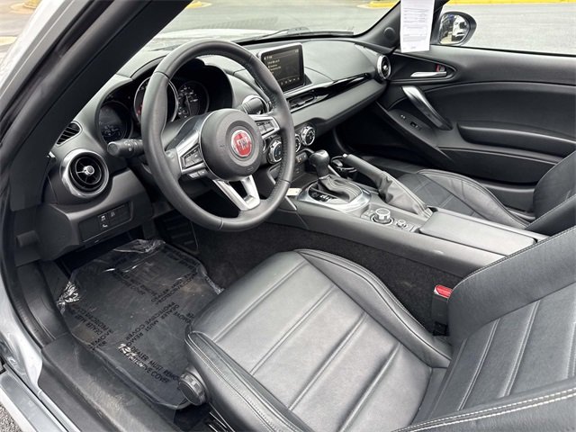 Just arrived - Fiat 124 Spider Lusso with convenience and visibility groups. Automatic - 17 alloy wheels/leather/heated seats/backup camera with parking sensors/blind spot with rear cross traffic alerts/automatic climate control/auto-dimming mirrors/adaptive LED headlamps with auto leveling/7" touchscreen/push button start/SAT Radio/Bluetooth/fog lights. 3 month/3,000 mile warranty. No hidden fees. One owner. More pictures and pricing coming right after our 160 point inspection and reconditioning process.