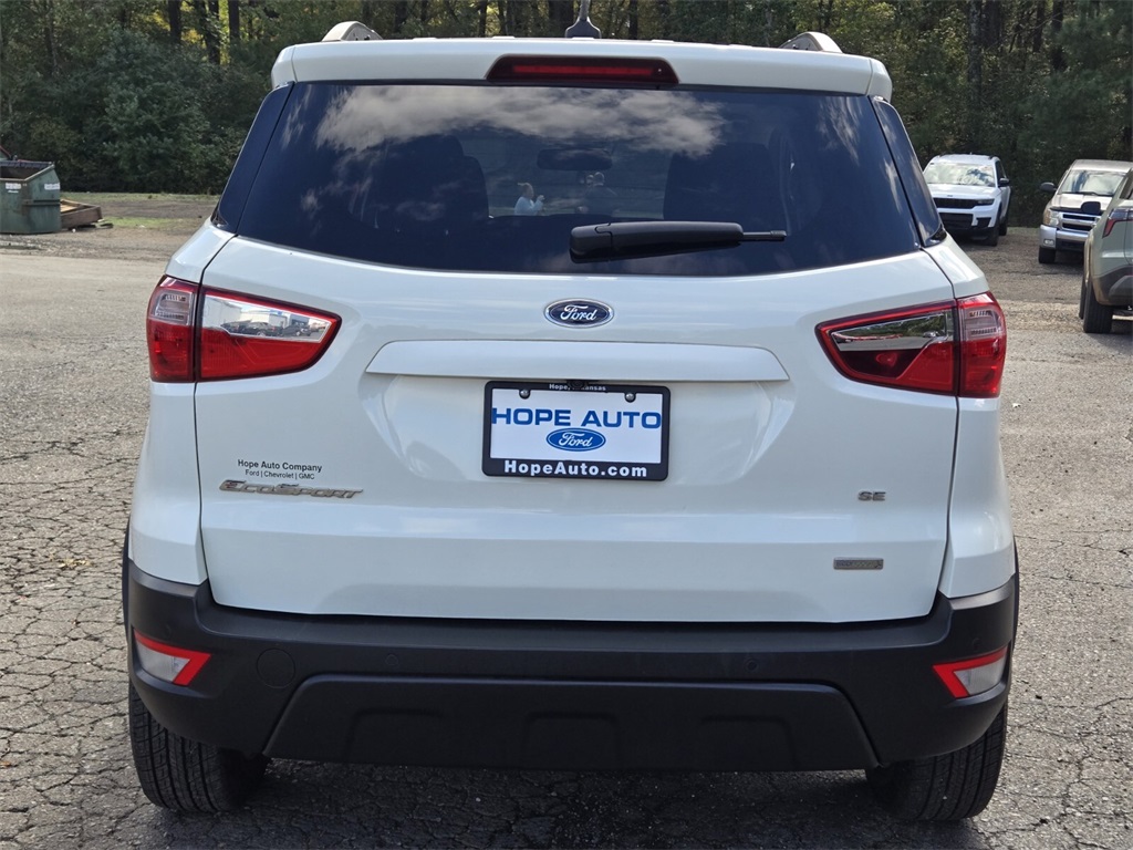 CARFAX One-Owner. 2020 Ford EcoSport SE 6-Speed Automatic EcoBoost 1.0L I3 GTDi DOHC Turbocharged VCT Diamond White. Centrally located between Texarkana and Arkadalphia, while serving Hope, Nashville, Prescott, Magnolia, Camden, Hot Springs, Mena, DeQueen, El Dorado, and all surrounding areas.
