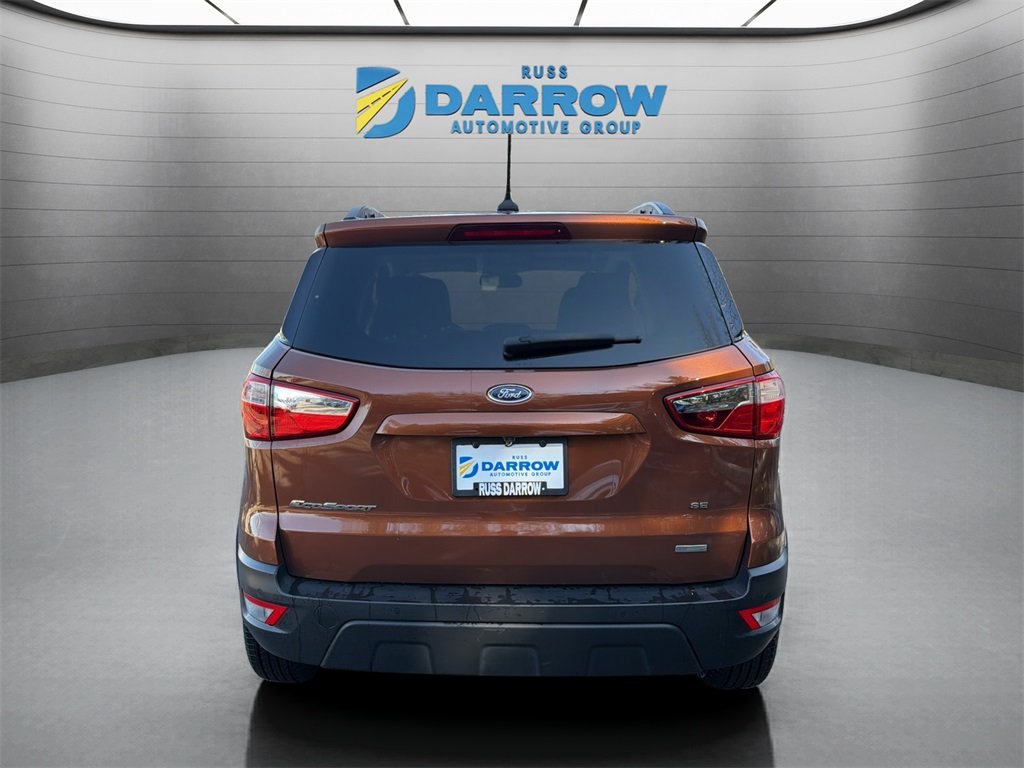 2020 Ford EcoSport SE Canyon Ridge EcoBoost 1.0L I3 GTDi DOHC Turbocharged VCT 6-Speed Automatic FWD Bluetooth connection for mobile phone, power sliding sunroof/moonroof, rear back-up camera with display, Android Auto & Apple CarPlay, blind spot monitoring, heated front seats, automatic temperature control, electronic stability control, front fog lights, fully automatic headlights, power driver seat, remote keyless entry, steering wheel mounted audio controls, and telescoping/tilt steering wheel. Includes exclusive membership status in the Russ Darrow Rewards Program. Earn points for every dollar spent on goods and services at any Russ Darrow location, plus extra points if purchasing packages with the Finance office. Use these points on your next new or used vehicle purchase at any Russ Darrow Dealership. You will earn $10 for every 1,000 points redeemed, up to a maximum redemption of $500 per transaction.