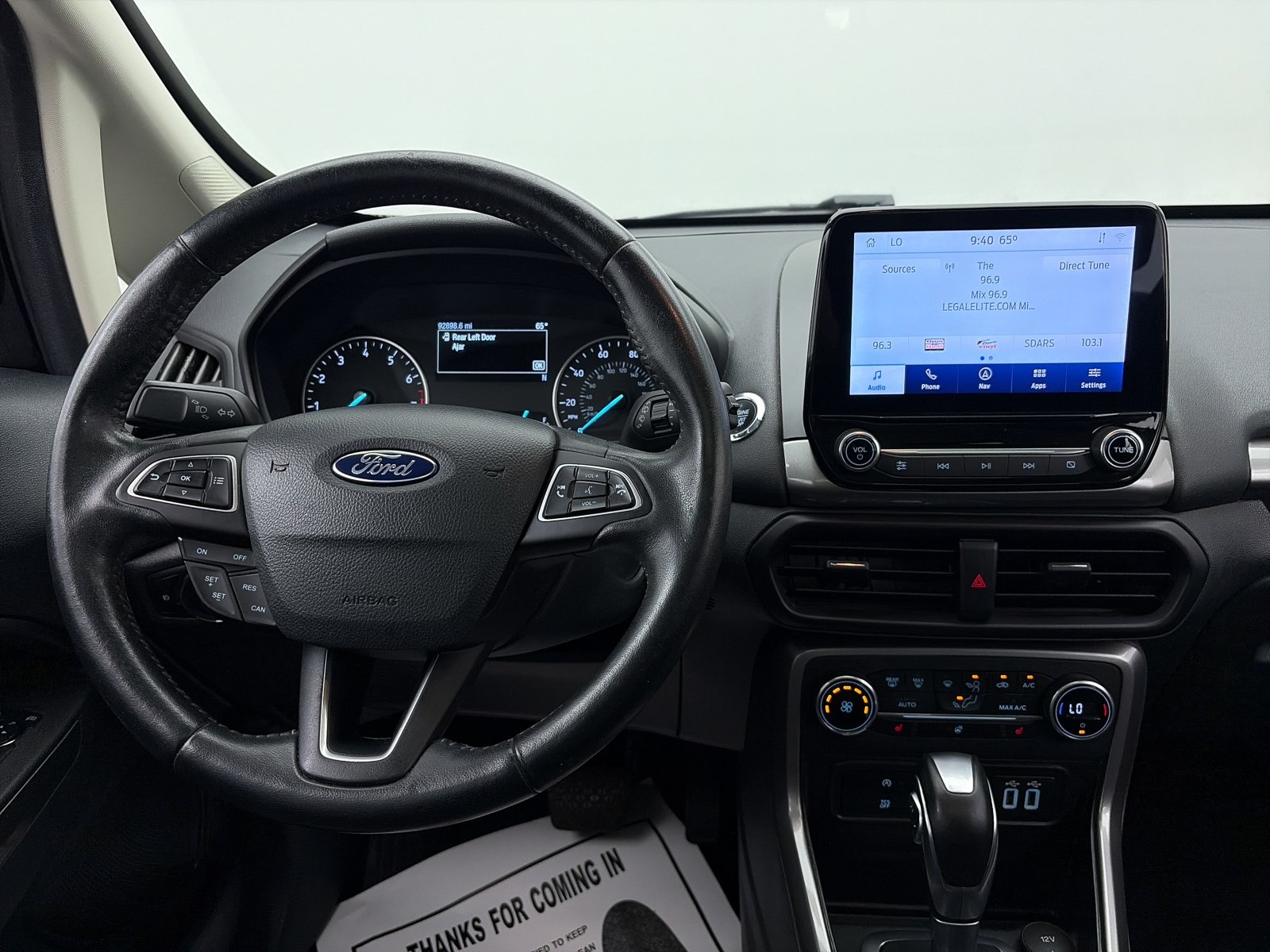 Black 2020 Ford EcoSport SES 4WD 6-Speed Automatic 2.0L I4 Ti-VCT GDI. Includes free oil changes and tire rotations for 1 year. Selling price excludes any installed accessories. Second key, floor mats, or owner's manual may not be available on all pre-owned vehicles. Prices are adjusted daily depending on market conditions and demand. Interested buyers are encouraged to contact dealer to lock in pricing. While we do our best to provide accurate pricing and vehicle equipment, errors do occur. Please check with dealer to confirm current pricing and incentives. It is the buyer's responsibility and encouraged by dealer to inspect the vehicle prior to sale. Price is plus tax, title, license, $998 dealer doc fee, and installed accessories. Dealer accessories may be removed and are never required for purchase. All vehicles are subject to prior sale.