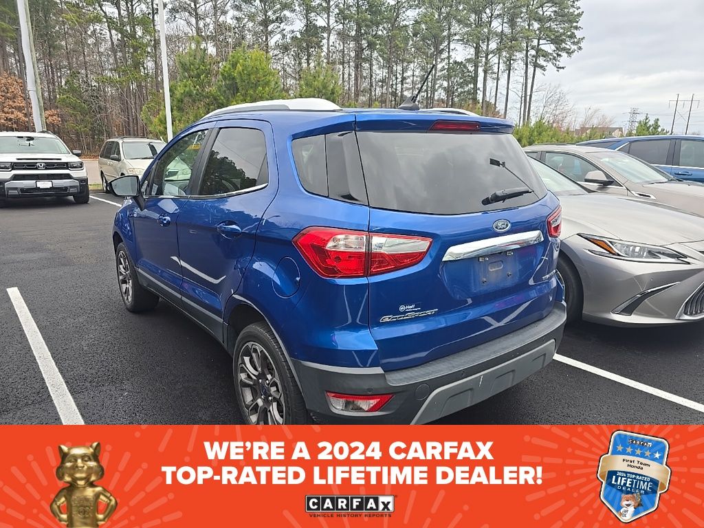 Recent Arrival! Lightning Blue Metallic 2020 Ford EcoSport Titanium. This vehicle comes complimentary with a 99 day or 3000 mile powertrain warranty, this Ford EcoSport has been serviced by our factory trained, certified technicians. 23/29 City/Highway MPG.