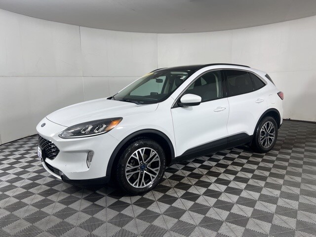 2020 Ford Escape SEL Oxford White Carfax One-Owner. Professionally Detailed, New Oil & Filter Change, 18" Machined-Face Aluminum Wheels, Black Roof-Rack Side Rails, Equipment Group 301A, Heated front seats, Heated steering wheel, Memory seat, Panoramic Vista Roof, Power driver seat, Power Liftgate, Power steering. Odometer is 23565 miles below market average! 26/31 City/Highway MPG. Awards: JD Power Automotive Performance, Execution and Layout (APEAL) Study. Coming Soon! This vehicle has recently been acquired and we are currently processing the paperwork, servicing the vehicle, and taking more photos. It will be available for sale and delivery shortly. See a store manager for specific details on the current status. IMPORTANT RECALL INFORMATION. Some vehicles may be subject to unrepaired safety recalls. Go to www.safercar.gov to learn whether an individual vehicle is subject to an open recall.