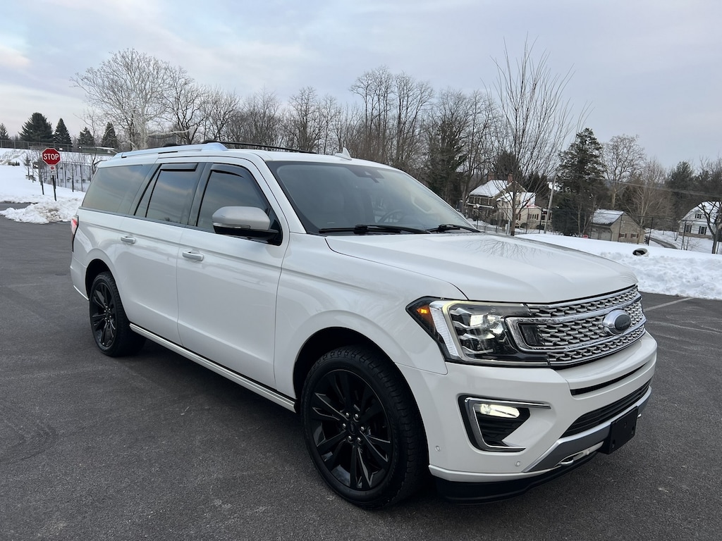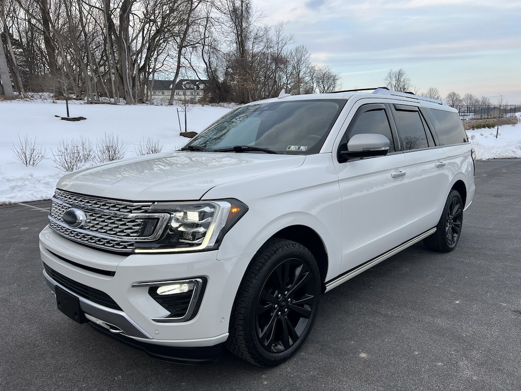 Just Traded! 2020 Ford Expedition MAX "Platinum" 4x4. Star White Metallic Tri-Coat trimmed with a beautiful medium ceramic leather interior with black accents. Just turned 110,000 Carfax Certified Two-Owner Miles. Fully optioned including 22" Ford Aluminum Wheels and Power-Fold Second Row Bucket Seats. The original Ford MSRP list price of $82,855 included just about everything available in a MAX Platinum. This Expedition has been thoroughly maintained by both owners. Most recent servicing includes transmission rebuilt by Ford September 2025 at 107,713 miles, new battery just installed, synthetic oil service, new rear brake pad & rotors, recent front brake pads & rotors, and 4 new BF Goodrich Trail Terrain T/A tires replaced in 2025. Custom upgrades include gloss black 22" Ford wheels, all canopy trim wrapped in black, mirror caps & door handle inserts wrapped in brushed stainless and satin black Ford ovals! This Expedition stands out from the rest! It looks and drives like new. Never any accidents. Non-smoker owned. All books, owner's manuals, 2 master keys and copy of the original Ford window sticker! None nicer! For more detailed information, please call 610-496-4250 or 610-836-8200.