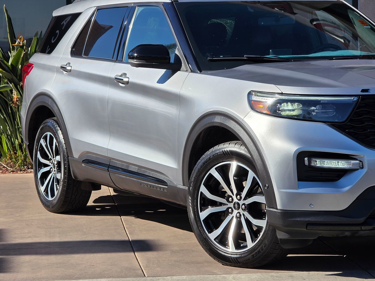 Athletic and upscale, our One Owner 2020 Ford Explorer ST 4WD with the Premium Technology Pack offers a faster path to fearless adventures in Iconic Silver Metallic! Motivated by a Twin-TurboCharged 3.0 Liter EcoBoost V6 delivering 400hp matched to a paddle-shifted 10 Speed SelectShift Automatic transmission for amazing acceleration. This Four Wheel Drive SUV also features a Terrain Management System for the tough stuff, and it returns nearly 24mpg on the highway. Our Explorer stands out with blackout design cues and an exclusive ST grille plus LED lighting, fog lamps, quad chrome exhaust tips, a hands-free liftgate, and 20-inch wheels for a bold and aggressive look. Our ST cabin is made for enthusiastic drivers, complete with our package that adds heated/ventilated Active Motion front seats, a 10.1-inch LCD Portrait touchscreen, and an upgraded Bang & Olufsen audio to heated second-row, a power-folding third row, a heated leather power sport steering wheel, and tri-zone automatic climate control. Further tech advantages include a 12.3-inch digital instrument panel, full-color navigation, Android Auto/Apple CarPlay, WiFi compatibility, Bluetooth, and wireless charging. Ford Co-Pilot360 technology safeguards your driving with a rearview camera, blind-spot monitor, automatic braking, lane-keeping assistance, and more. Your family will make the most out of every experience with our Explorer ST! Save this Page and Call for Availability. We Know You Will Enjoy Your Test Drive Towards Ownership!