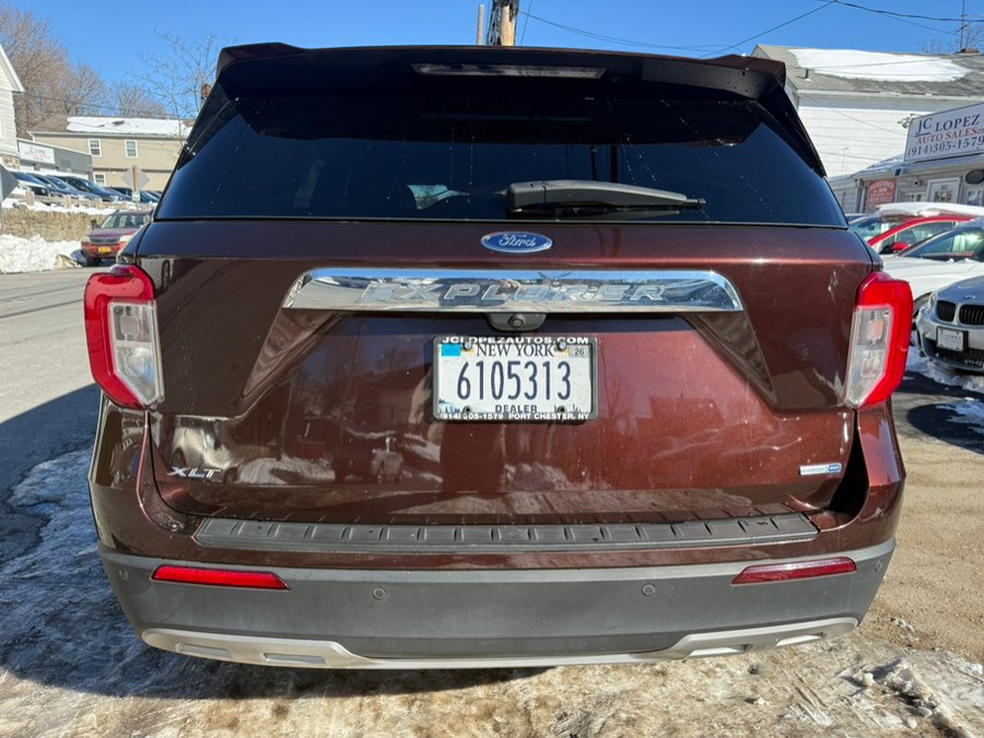 This 2020 Ford Explorer XLT 4WD is available for sale in Port Chester, New York. It features a Rapid Red Metallic Tinted Clearcoat exterior with Ebony Leather interior, and is equipped with a 2.3L EcoBoost I-4 engine and 10-speed automatic transmission. The vehicle offers a comfortable and versatile interior with three rows of seating, advanced technology, and a range of safety features. Please confirm the accuracy of the specifications provided above with the dealer's representative.