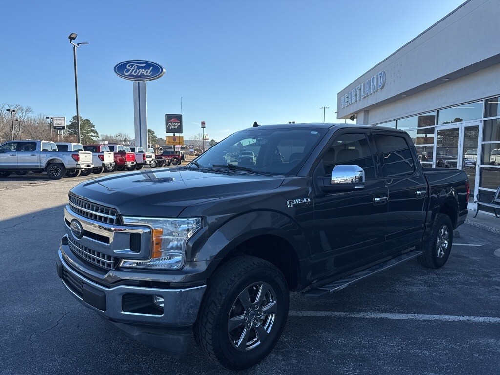 This 2020 Ford F-150 XLT in Magnetic comes with the following features: 5.0L V8 10-Speed Automatic RWD Equipment Group 302A Luxury (4.2" Productivity Screen in Instrument Cluster, Auto-Dimming Rear-View Mirror, Cloth 40/20/40 Front Seat, Fixed Backlight w/Privacy Glass, Heated Front Seats, Leather-Wrapped Steering Wheel, Power Glass Heated Sideview Mirrors, Power-Adjustable Pedals, Rear Under-Seat Storage, Rear Window Defroster, and SiriusXM Radio), XLT Chrome Appearance Package (2-Bar Style Grille w/Chrome 2 Minor Bars, Chrome Door & Tailgate Handles w/Body-Color Bezel, Chrome Step Bars, Single-Tip Chrome Exhaust, and Wheels: 18" Chrome-Like PVD), 4-Wheel Disc Brakes, 6 Speakers, 8-Way Power Driver Seat, ABS brakes, Air Conditioning, Alloy wheels, AM/FM radio, Auto High-beam Headlights, Brake assist, Bumpers: chrome, Class IV Trailer Hitch Receiver, Compass, Delay-off headlights, Driver door bin, Driver vanity mirror, Dual front impact airbags, Dual front side impact airbags, Emergency communication system: SYNC 3 911 Assist, Exterior Parking Camera Rear, Front anti-roll bar, Front Center Armrest w/Storage, Front fog lights, Front wheel independent suspension, Fully automatic headlights, Illuminated entry, Low tire pressure warning, Occupant sensing airbag, Outside temperature display, Overhead airbag, Panic alarm, Passenger door bin, Passenger vanity mirror, Power door mirrors, Power steering, Power windows, Radio data system, Radio: AM/FM Stereo w/6 Speakers, Rear step bumper, Remote keyless entry, Remote Start System, Security system, Speed control, Speed-sensing steering, Split folding rear seat, Steering wheel mounted audio controls, SYNC 3, Tachometer, Telescoping steering wheel, Tilt steering wheel, Traction control, Tray Style Floor Liner, Variably intermittent wipers, Voltmeter, and Wheels: 17" Silver Painted Aluminum. Recent Arrival! CARFAX One-Owner. Clean CARFAX.