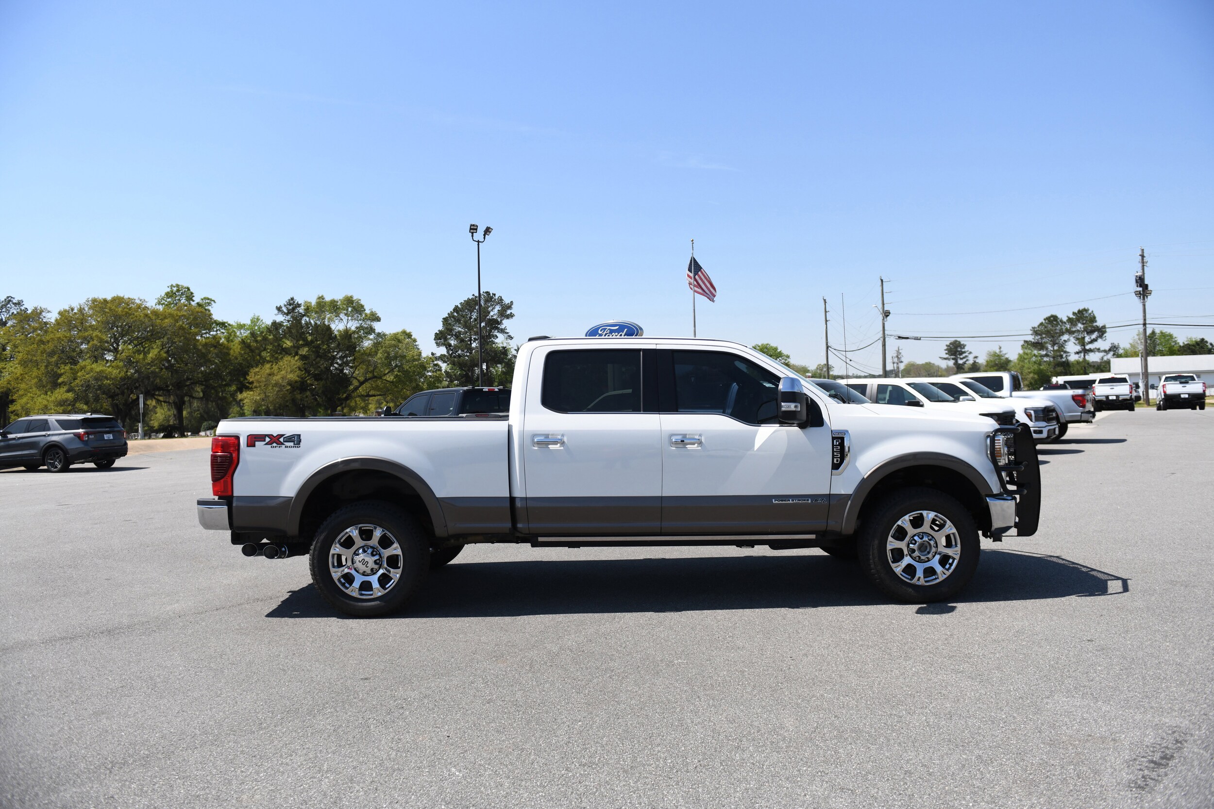 Recent Arrival! 2020 Ford F-250SD King Ranch Star White Metallic Tri-Coat 4WD, 34 Gallon Fuel Tank, Auto High-beam Headlights, Body-Color Door Handles w/Chrome Insert, Chrome Front & Rear Bumpers, Chrome Package, Electronic-Locking w/3.31 Axle Ratio, Exterior Parking Camera Rear, Front Bucket Seats, Front dual zone A/C, FX4 Off-Road Package, Heated front seats, King Ranch Ultimate Package, Memory seat, Multi-Contour Seats, Navigation System, Order Code 700A, Power driver seat, Power passenger seat, Power-Deployable Running Boards, PowerScope Trailer Tow Mirrors w/Heat, Quad Beam LED Headlamps & LED Taillamps, Radio: B&O System by Bang & Olufsen, SiriusXM Radio, Speed control, SYNC 3 Communications & Entertainment System, Tailgate Step & Handle, Twin Panel Power Moonroof, Unique Chrome Mirror Caps, Unique FX4 Off-Road Box Decal, Upfitter Switches (6), Ventilated front seats, Wheels: 20" Chrome PVD Aluminum. Power Stroke 6.7L V8 DI 32V OHV Turbodiesel 4WD 10-Speed Automatic.