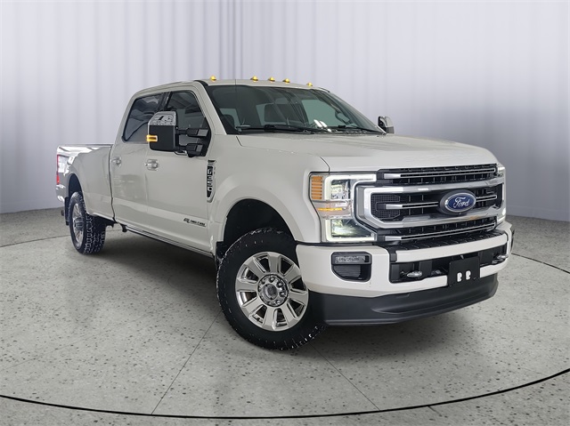 Star White Metallic Tri-Coat 2020 Ford F-350SD Platinum 4WD 10-Speed Automatic Power Stroke 6.7L V8 DI 32V OHV Turbodiesel. Local trade, you won't find a nicer one, immaculate condition, F-350SD Platinum, 4D Crew Cab, Power Stroke 6.7L V8 DI 32V OHV Turbodiesel, 10-Speed Automatic, 4WD, Star White Metallic Tri-Coat, Black w/Unique Platinum Leather 40/Console/40 Seats. Recent arrival!