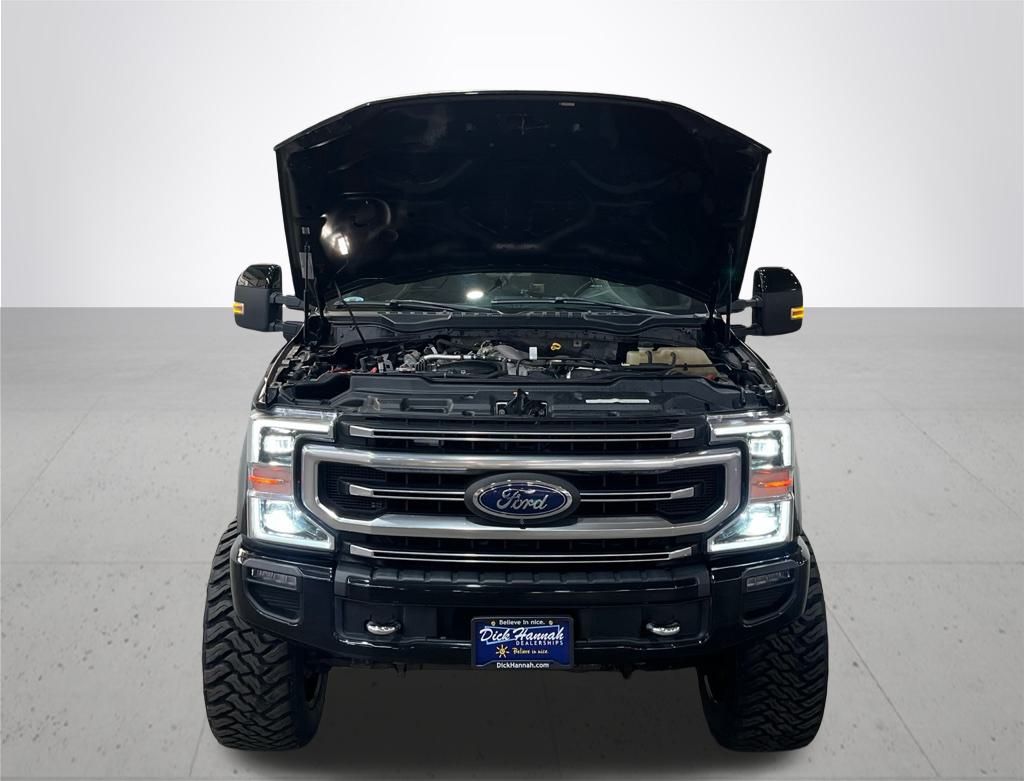 Agate Black Metallic 2020 Ford F-350SD Platinum 4WD Power Stroke 6.7L V8 DI 32V OHV Turbodiesel 10-Speed Automatic. Clean Carfax. Dirt Logic Lift Kit. 22" Premium Hostile Wheels. Fabtech Adjustable Trac Bar. FX4 Off-Road Package. Twin Panel Moonroof. 10-Way Dual Power Seats. Rain Sensing Wipers. BLIS with Cross-Traffic Alert. 5th Wheel/Gooseneck Hitch Prep Package. Power Heated/Ventilated Driver Seat with Memory. Power Heated/Ventilated Passenger Seat. Peace of mind warranty: Rest easy - you're covered for 12 months or 12,000 miles on many of your vehicle maintenance items including battery, brake pads, belts and hoses, wiper blades. In addition, each Dick Hannah used vehicle comes with a powerful 3 month/3,000 mile power train warranty which covers engine, transmission, drivetrain. You can breathe easy knowing that your unexpected repairs will be covered. See dealership for full warranty details.