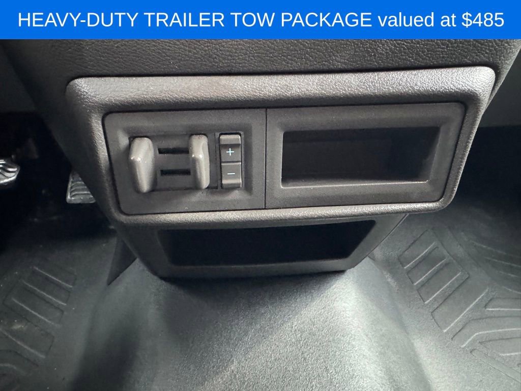 - AM/FM Stereo radio, AM/FM radio, Apple CarPlay, Blind Spot Monitor, Cruise Control w/Adjustable Spd Limiting Device, D-Pillar Assist Handles, Driver's Seat Mounted Armrest, Dual front impact airbags, Dual front side impact airbags, Electronic Stability Control, Exterior Parking Camera Rear, Frame Mounted Hitch Receiver, Front & Rear Vinyl Floor Covering, Front anti-roll bar, Front Bucket Seats, Front Fog Lamps, Front License Plate Bracket, Front reading lights, Front wheel independent suspension, Fully automatic headlights, Heavy-Duty Trailer Tow Package, Illuminated entry, Large Center Console, Low tire pressure warning, Modified Vehicle Wiring System